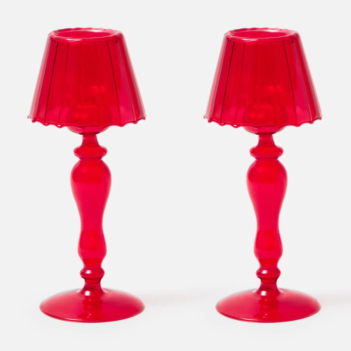 Candle Holders | Tea Light Lanterns<Mrs. Alice Red Glass Lantern Tea Light Holder (Pair) – 24 cm