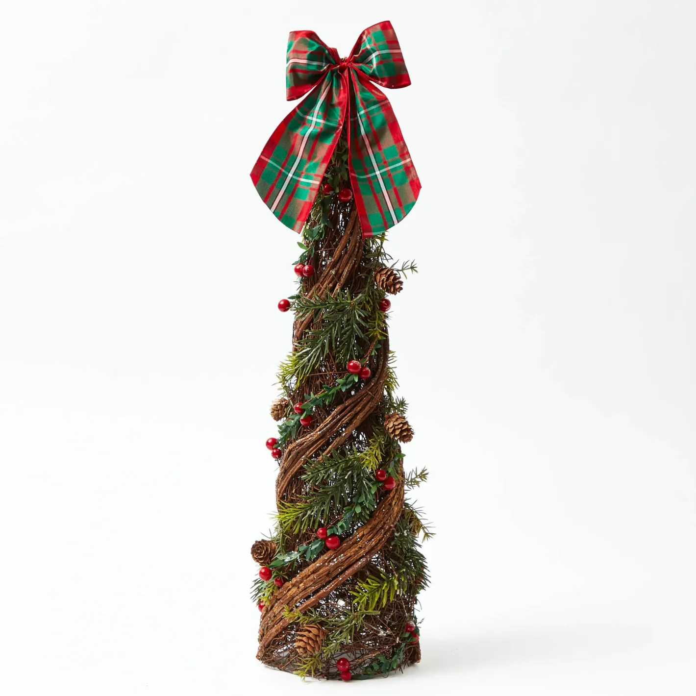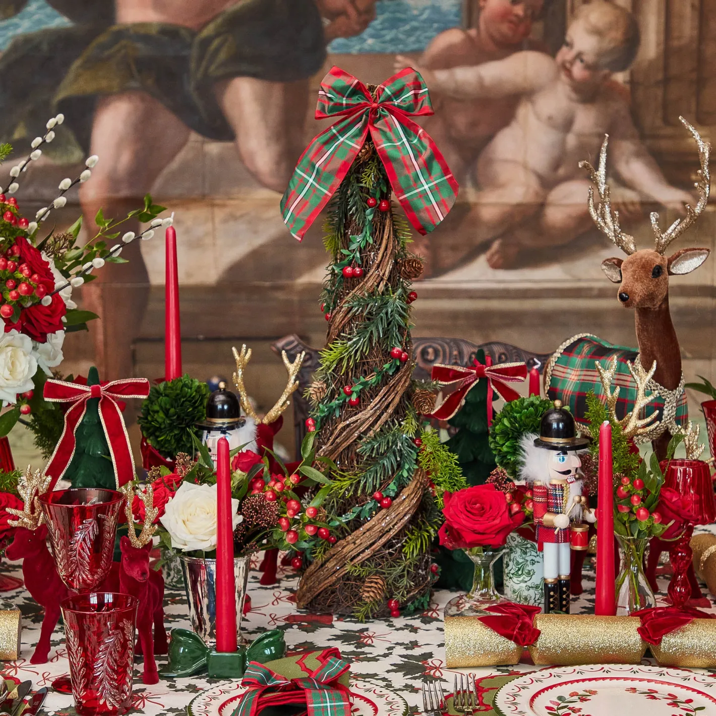 Our Decorative Festive Tree with Red & Green Tartan Bow is an elegant way to combine classic Christmas style with nature. With twine, berries, pinecones, and a tartan bow, this piece is perfect for adding a festive touch to your decor.
