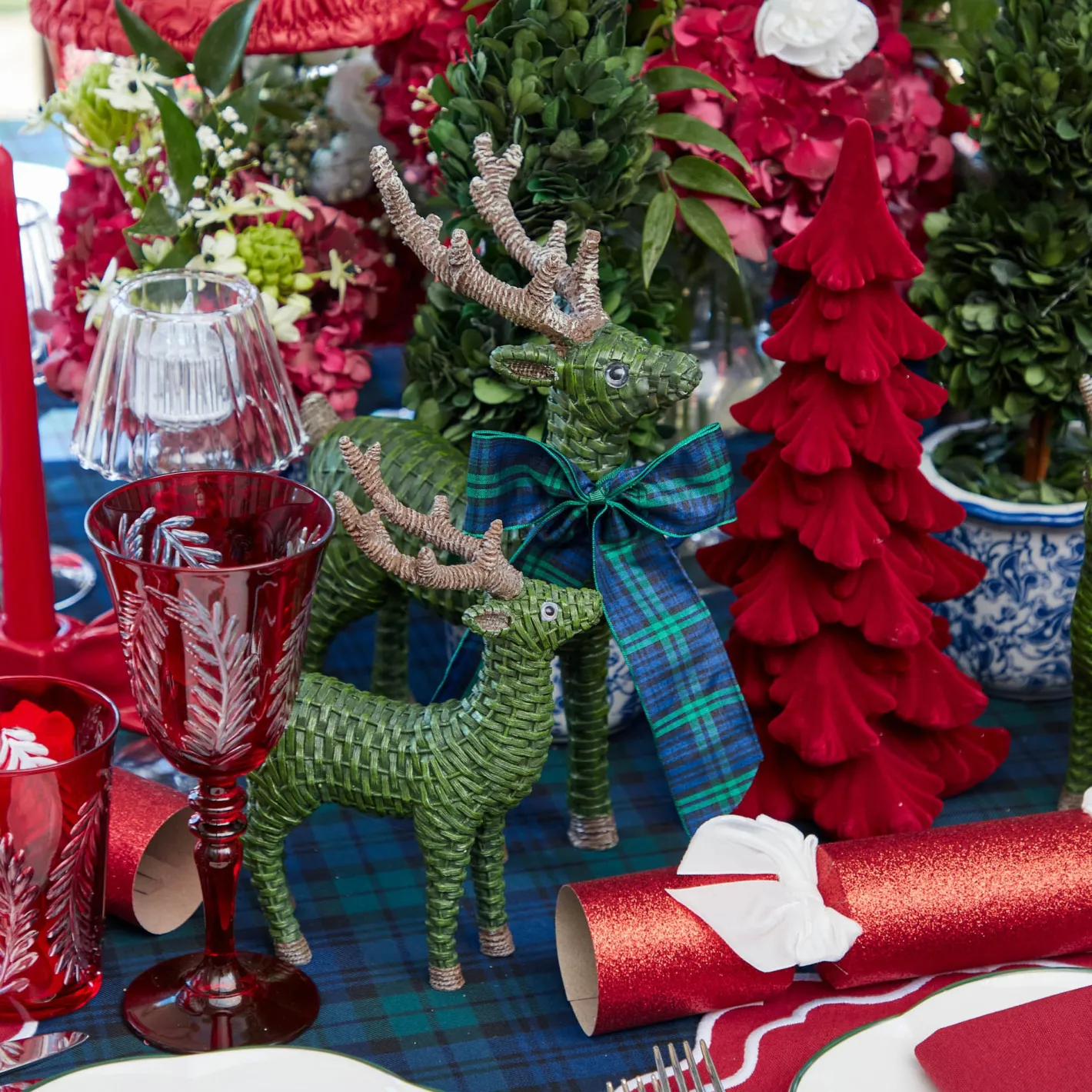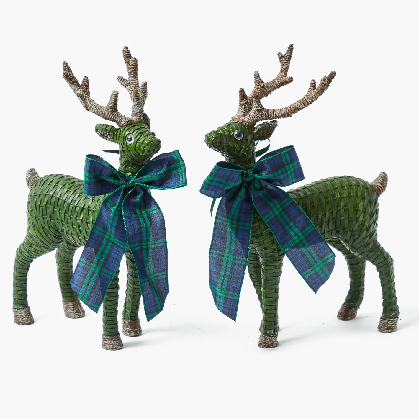 Complete your seasonal centrepieces with our Forest Green Rattan Reindeer. This poised pair are crafted from woven rattan and adorned with blue tartan bows for a touch of woodland spirit.