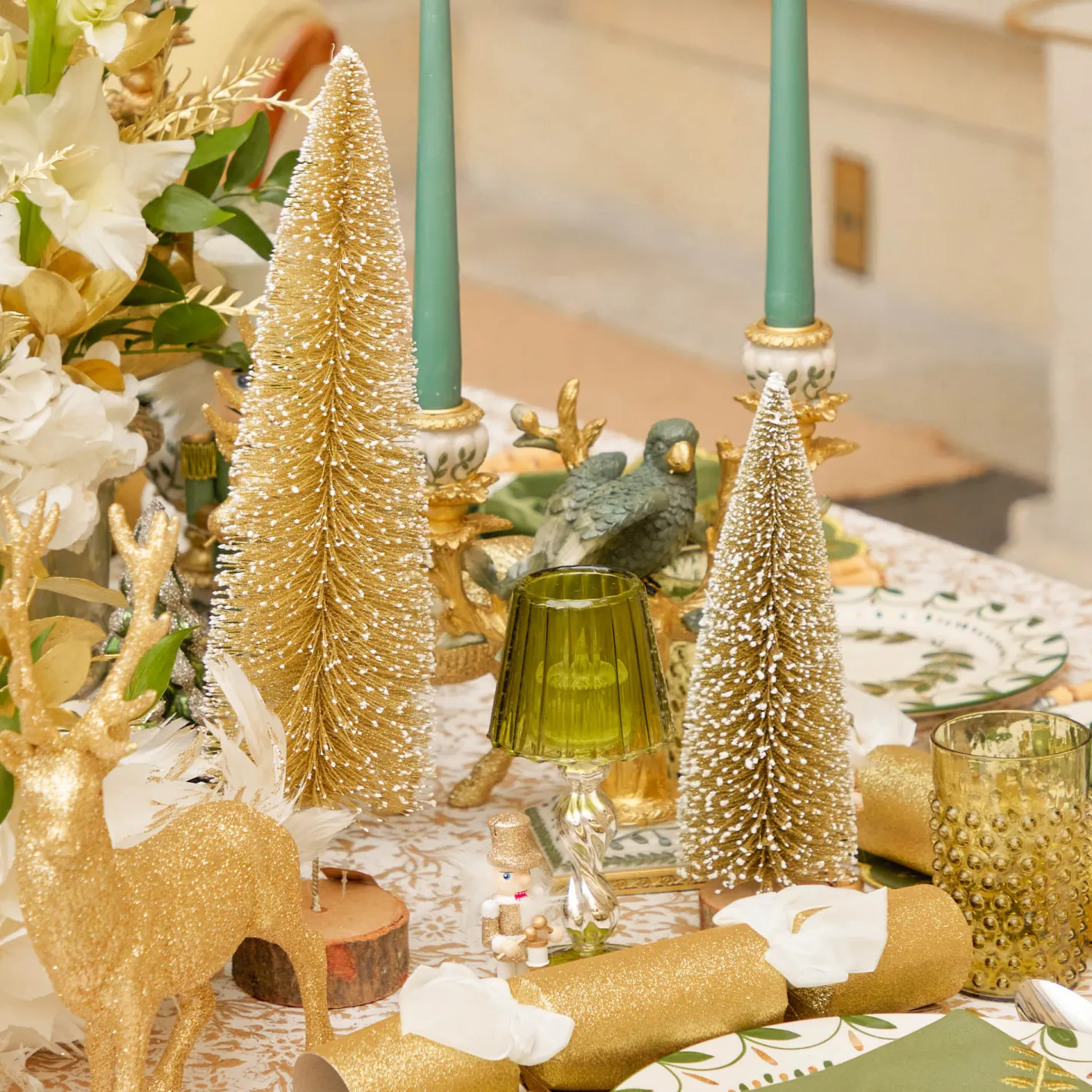 Our Gold Glitter Tree decorations are incredibly versatile, proving to be the perfect addition to many of our Christmas Tablescapes and decorations.