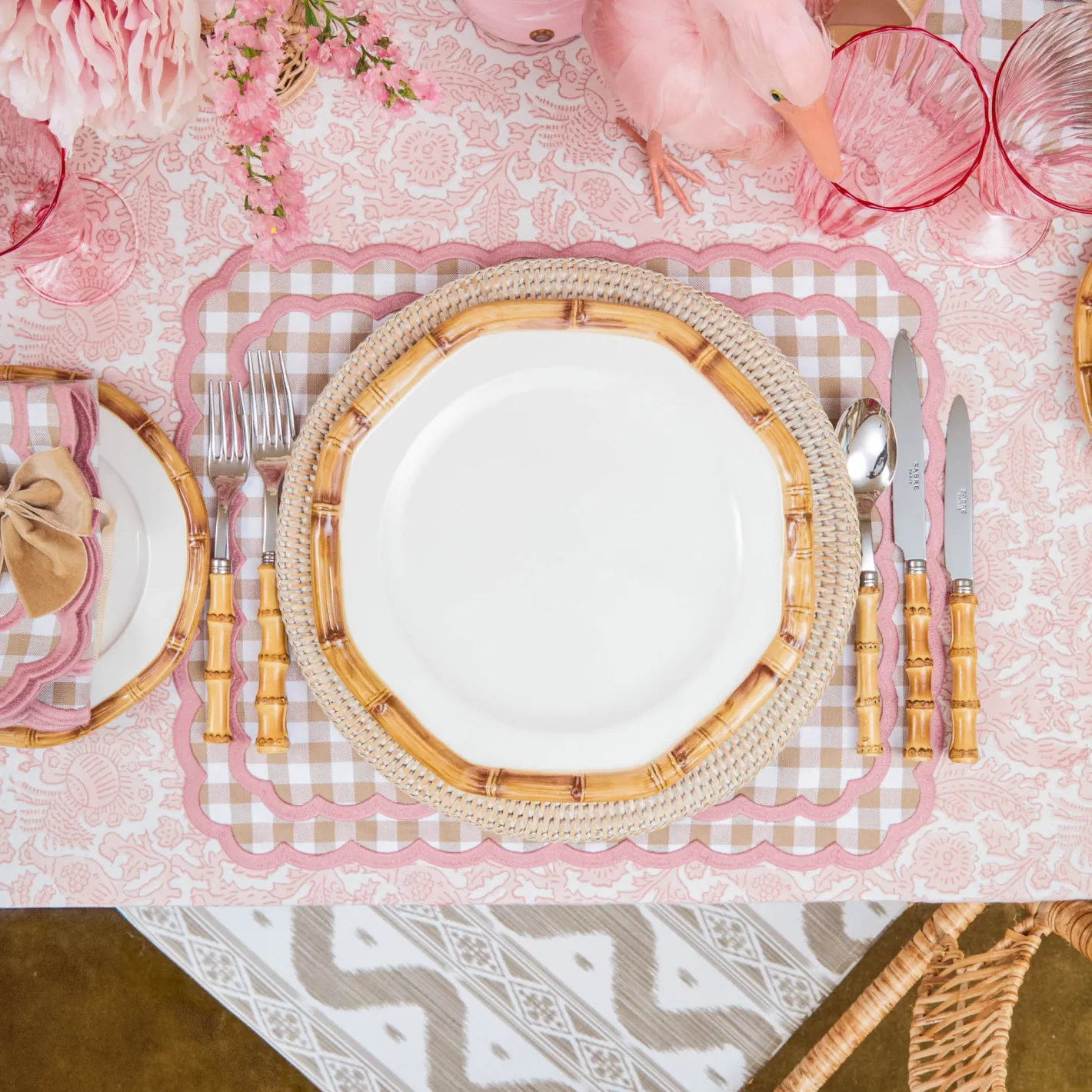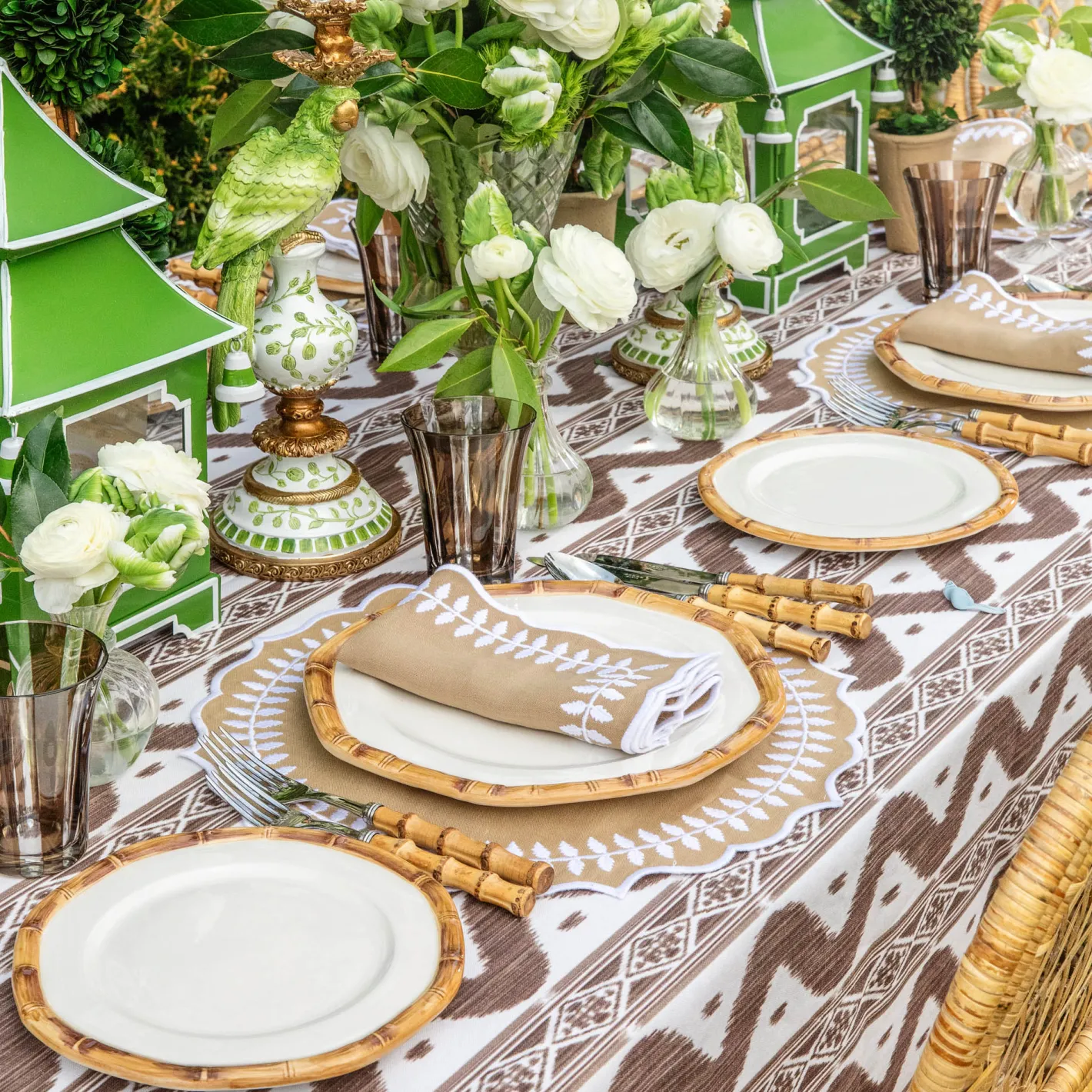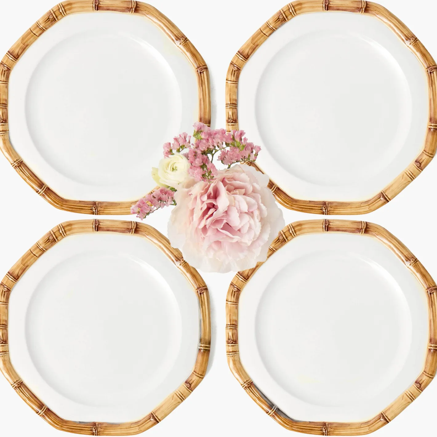 Our Natural Bamboo Dinner plate is elegantly hand painted in Italy. Its octagonal Bamboo rim adds a unique touch to this retro inspired plate.