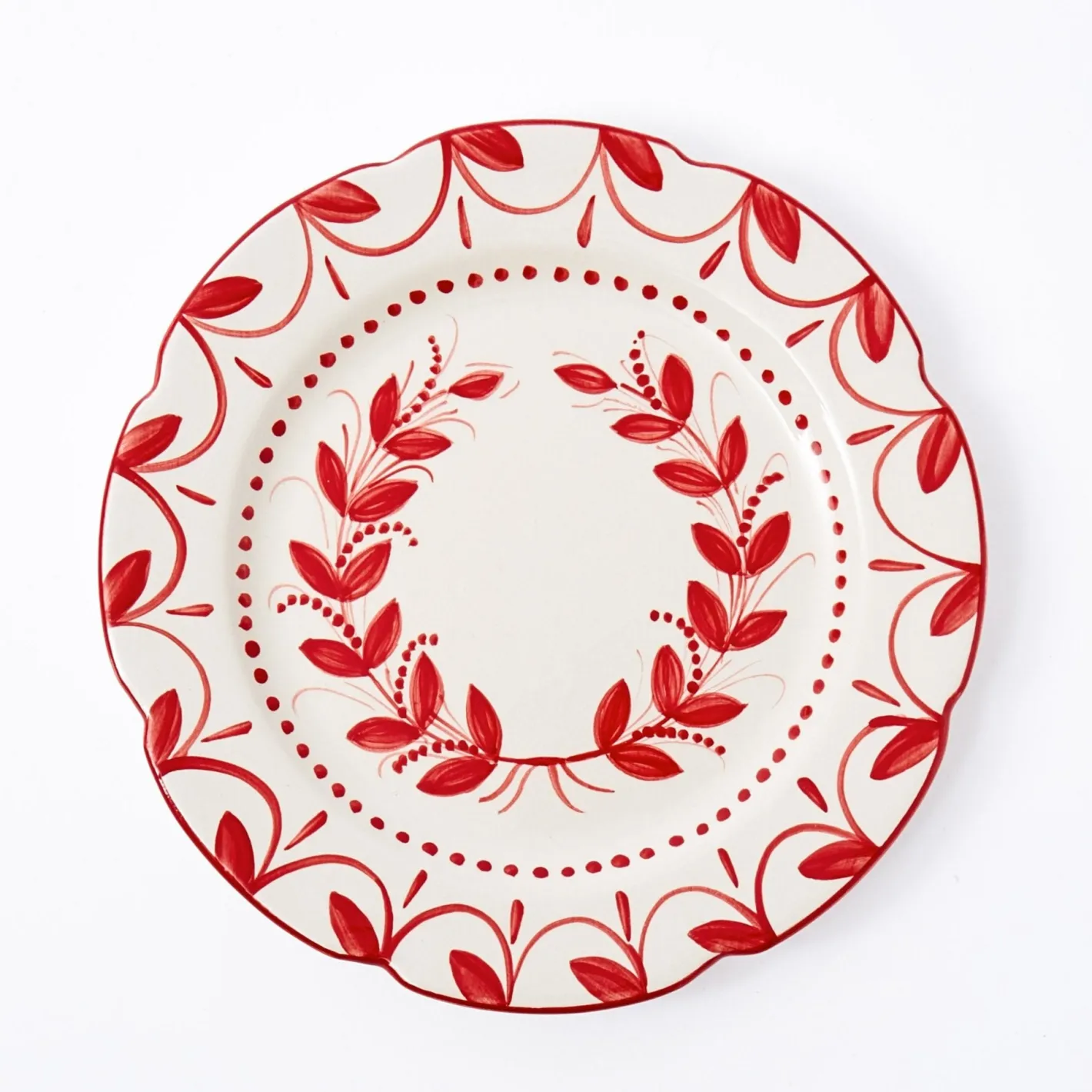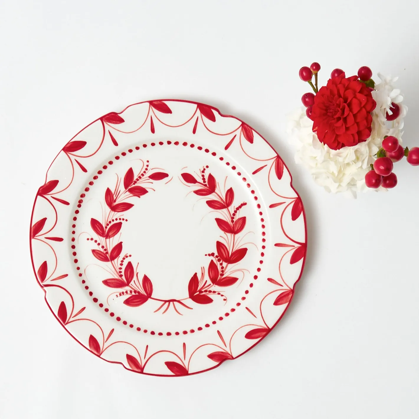 This festive Elizabeth Red Garland Dinner Plate features a beautifully painted wreath in bright red.