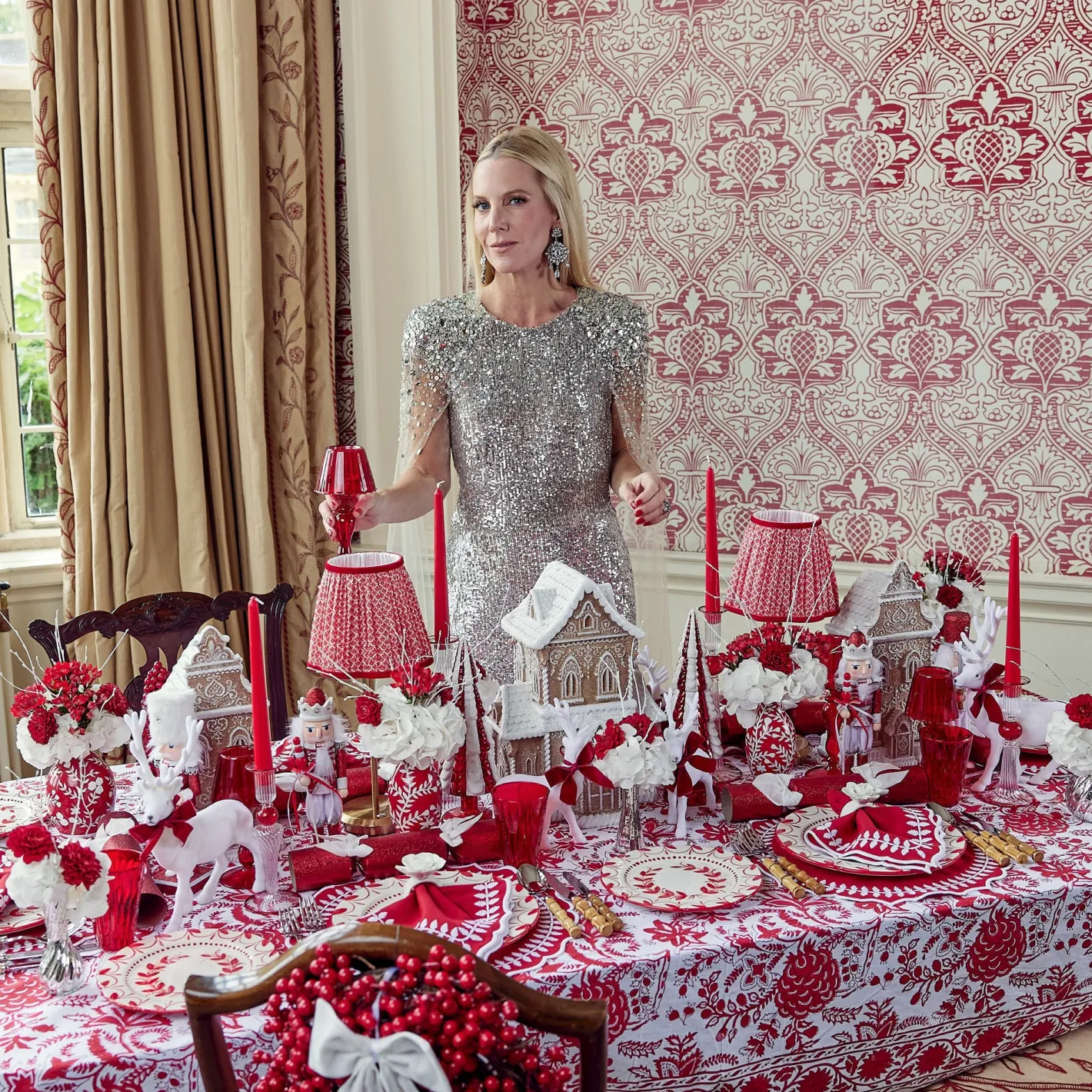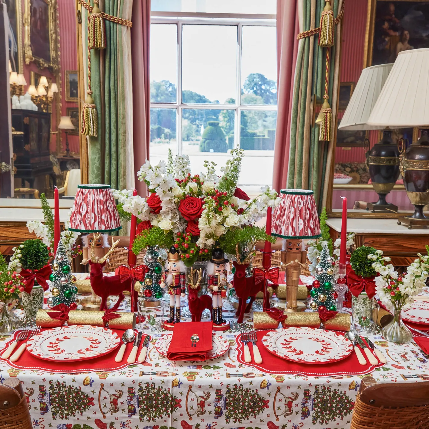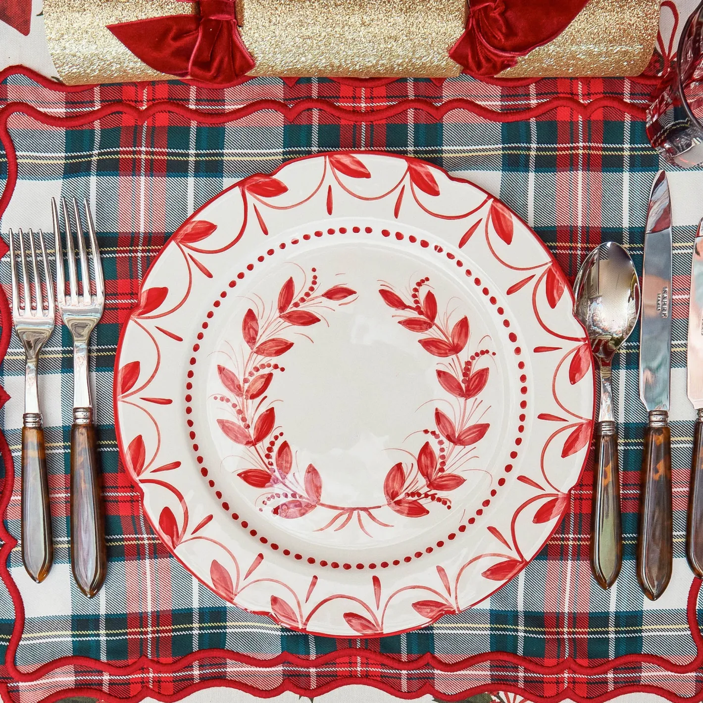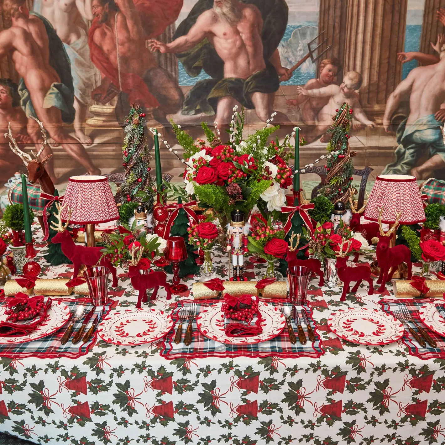 Create the ultimate Christmas table by styling with our Red Elizabeth Garland Starter Plates, Beatrice Tablecloth and Red Laurel Napkins.