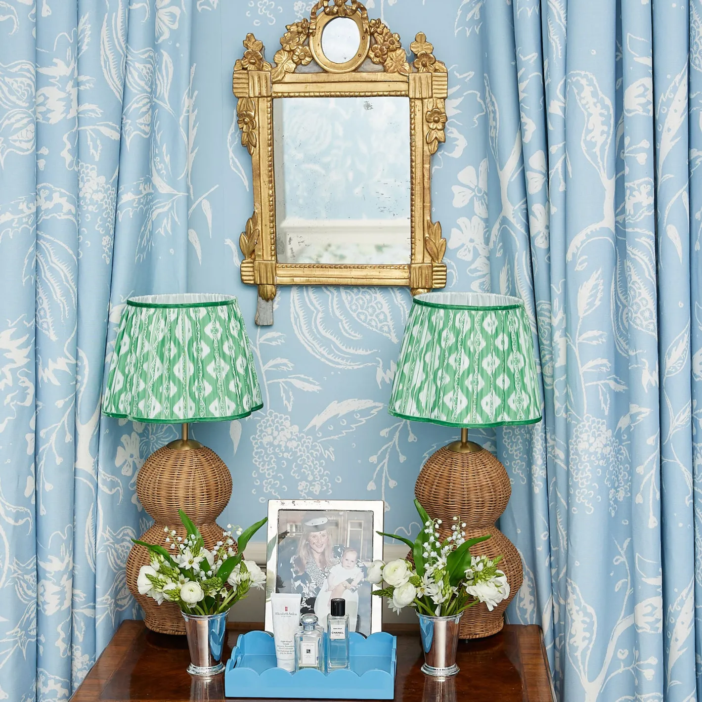 Our crisp Apple Green Ikat Scalloped Lampshade adds a fresh touch to your home.