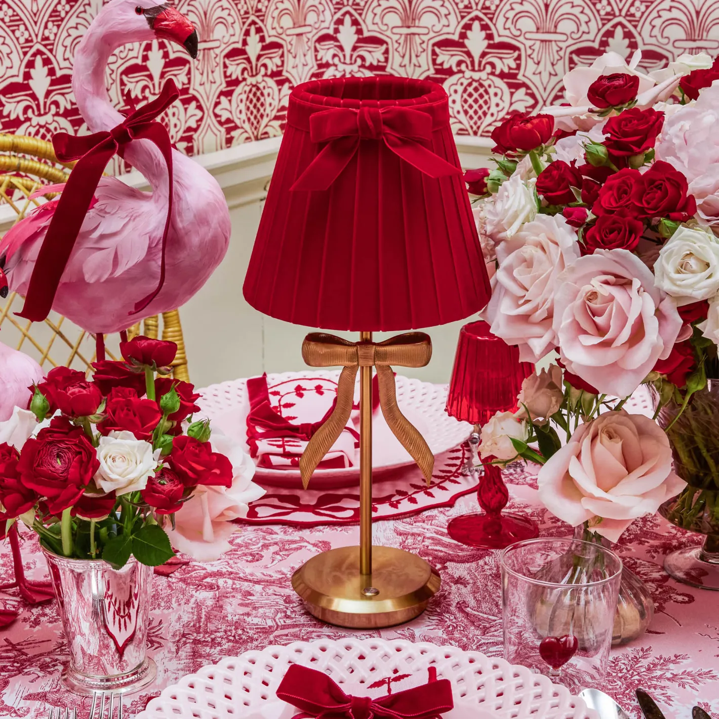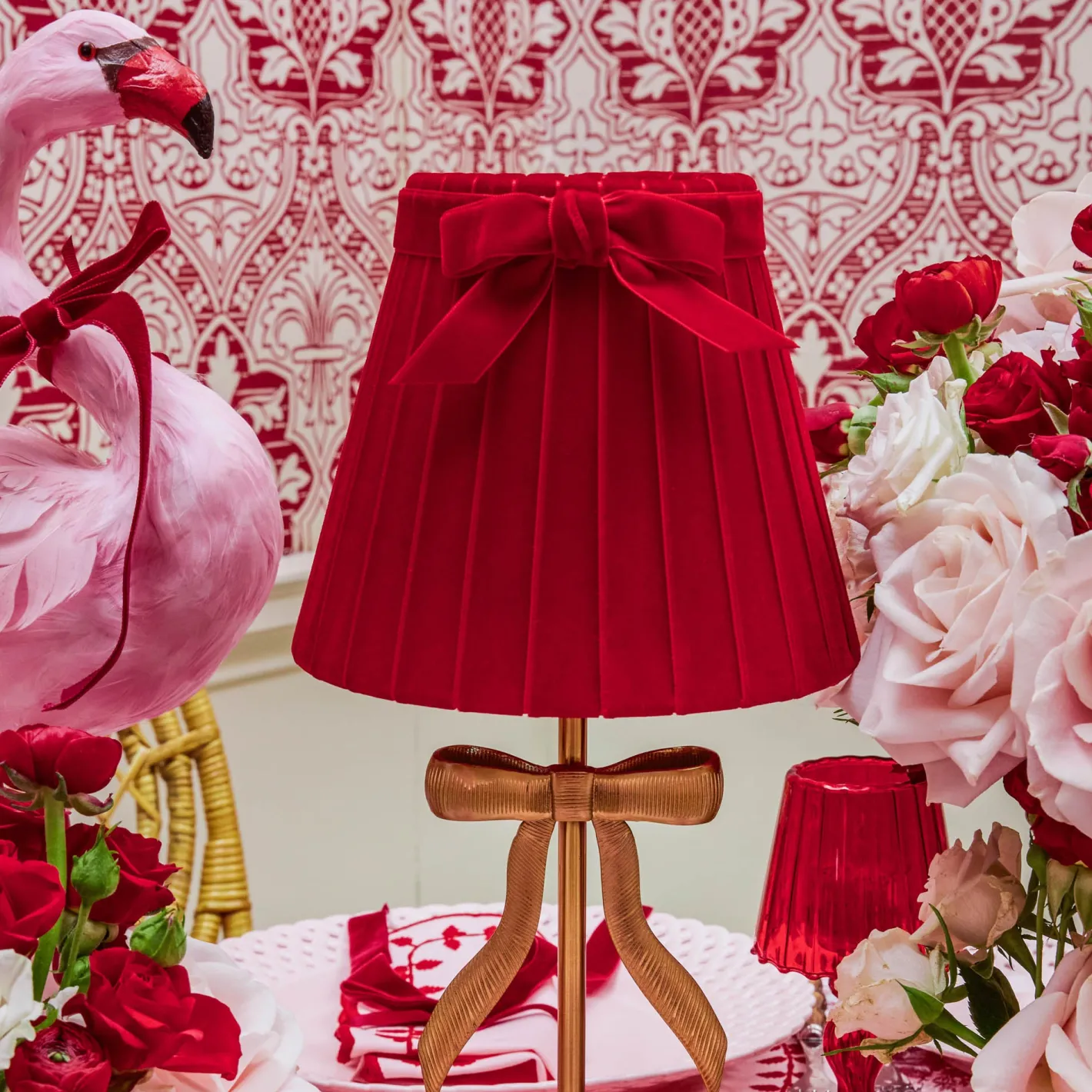 Exude luxury and glamour when you style our Red Velvet Bow Lampshade. This velvety, pleated piece comes in a rich red hu…