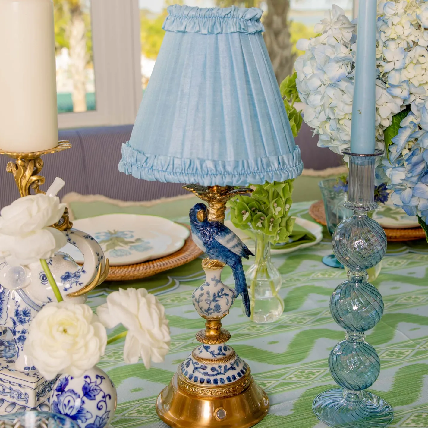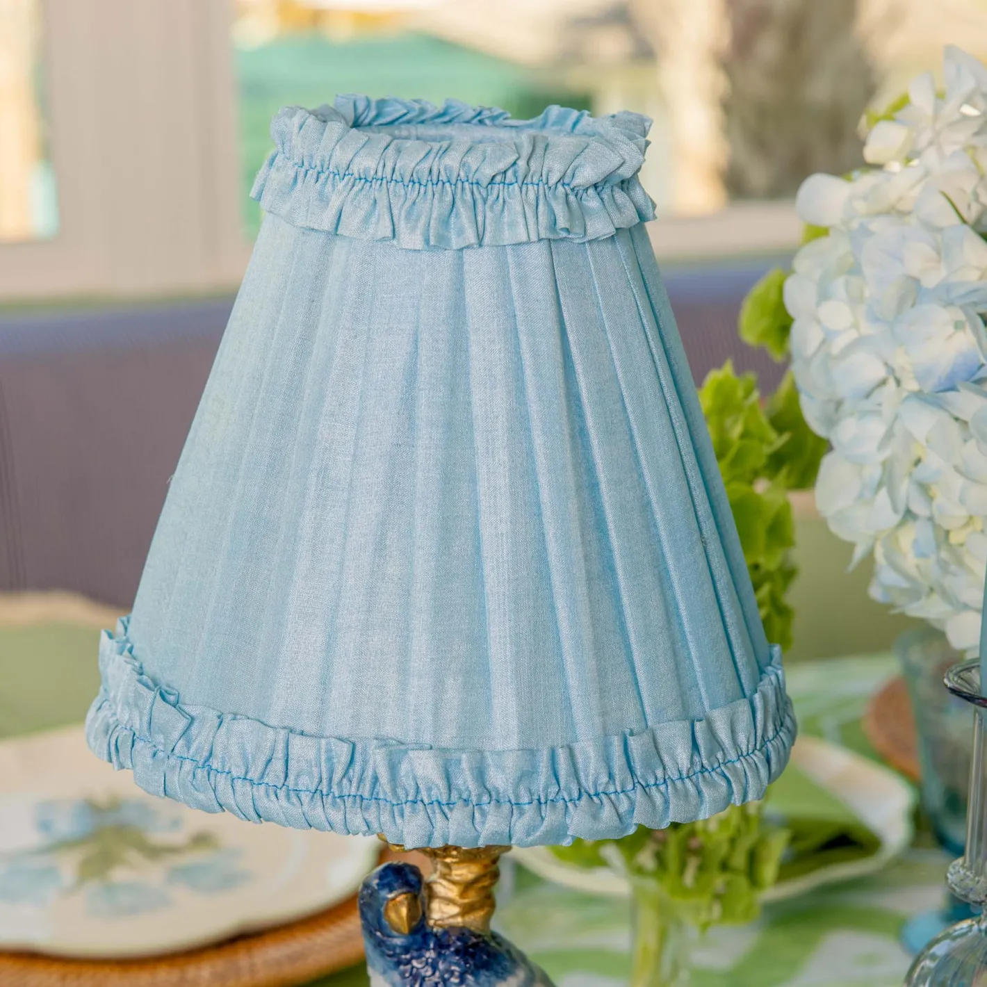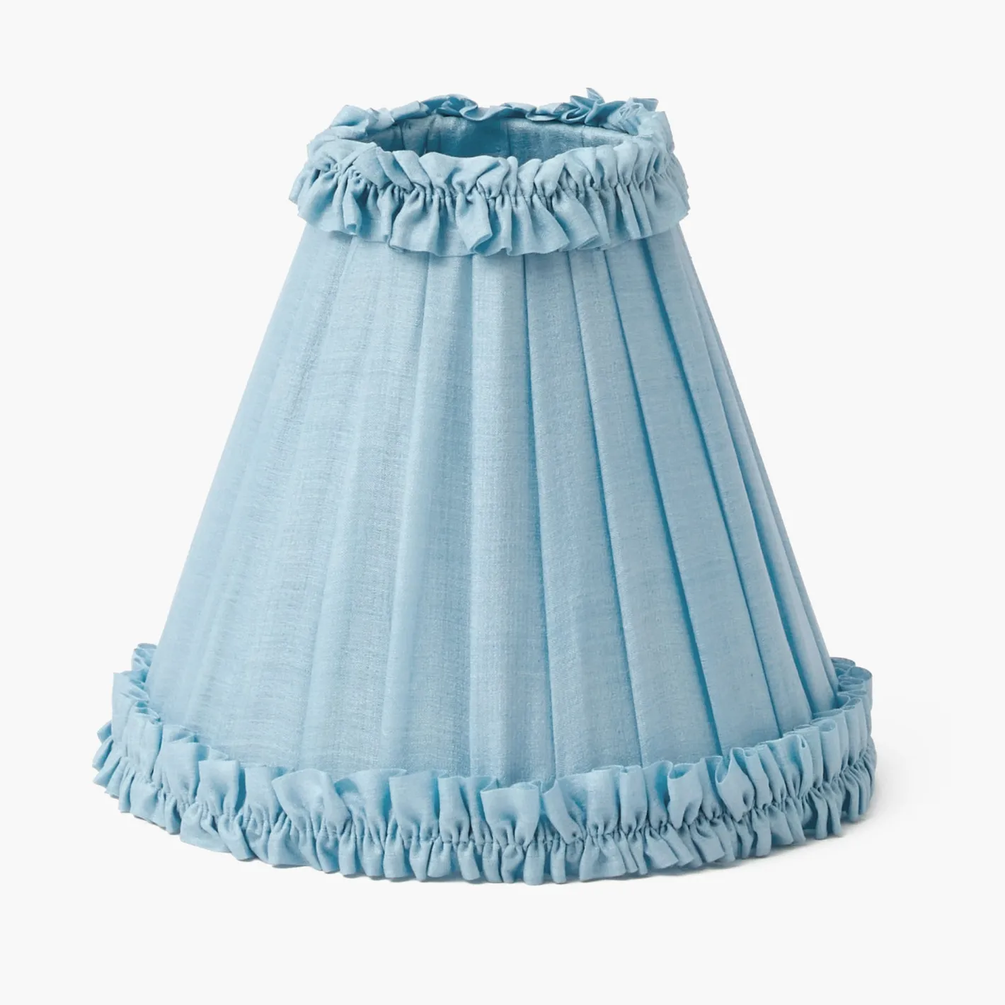 Our Soft Blue Silk Frilled Lampshade is an adorable piece that will add a feminine touch to your decor. Crafted from a luxurious silky fabric, this pastel blue piece is embellished with pleating and ruffled trims.