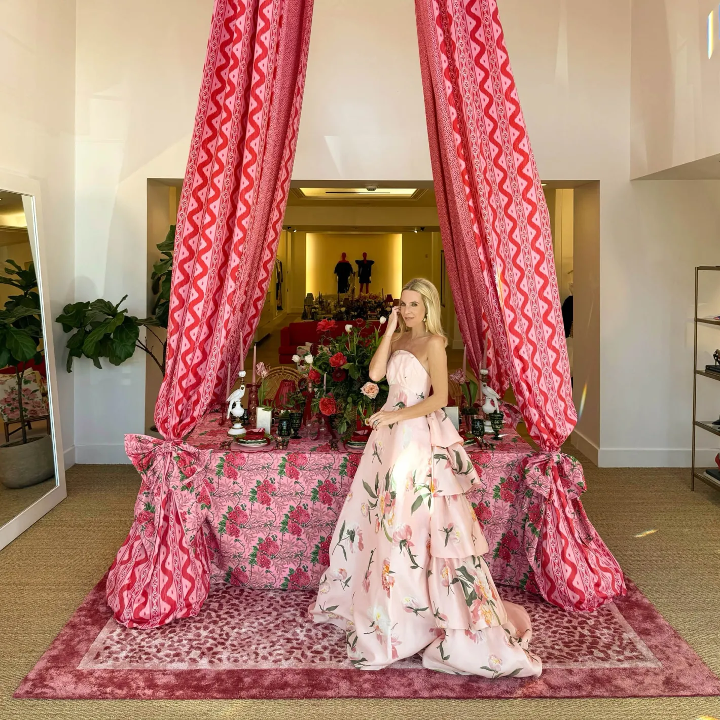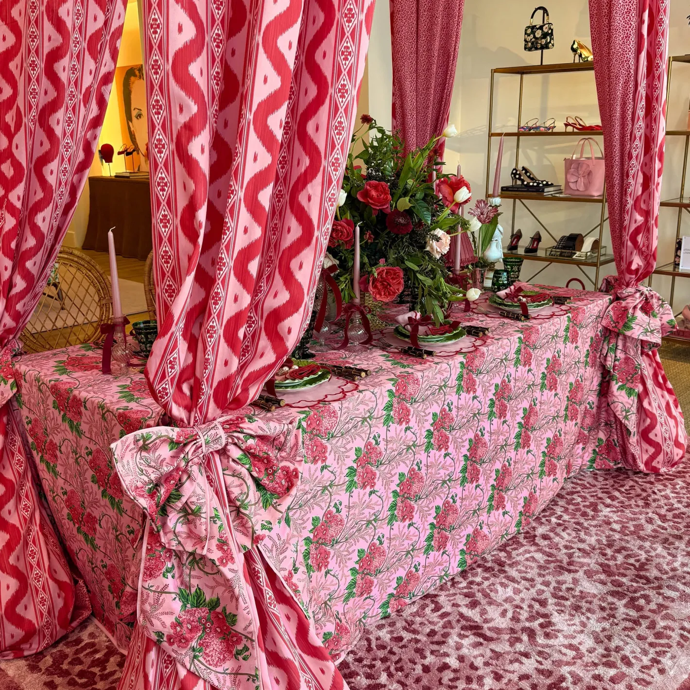 In signature Carolina Herrera Pink and Red, this limited edition set of Napkins were exclusively created for the Carolina Herrera Store in Dallas, Texas. Part of the Carolina Herrera collaboration with Mrs. Alice, these exquisite linens come in the classic Lily shape.