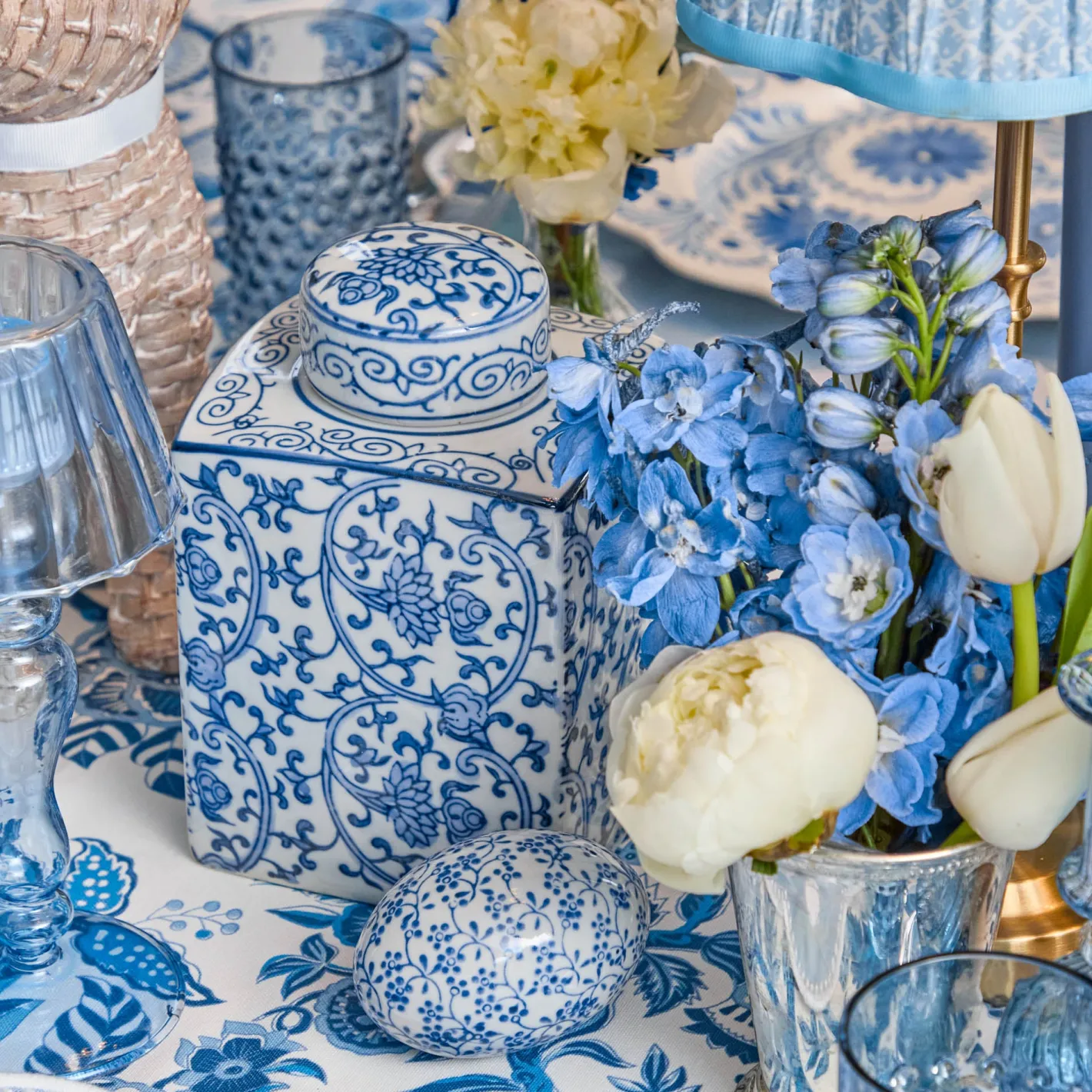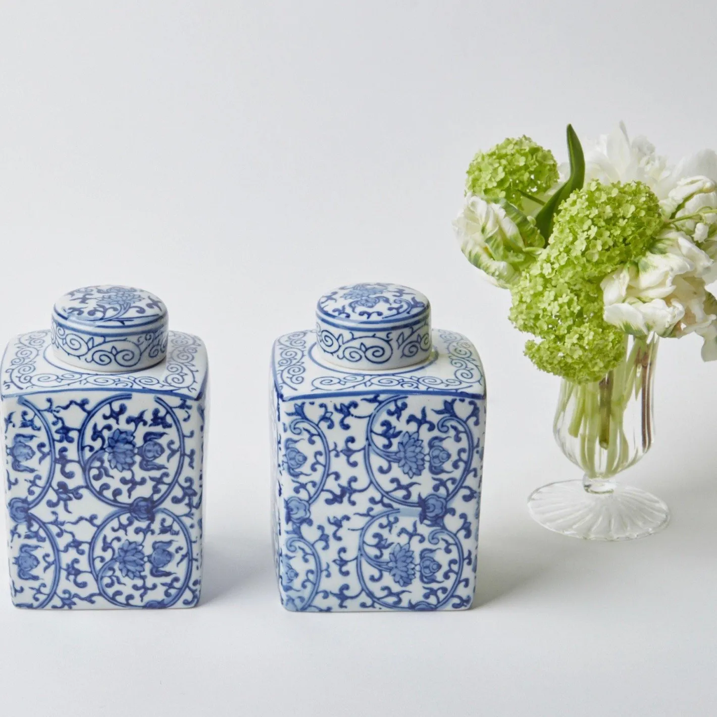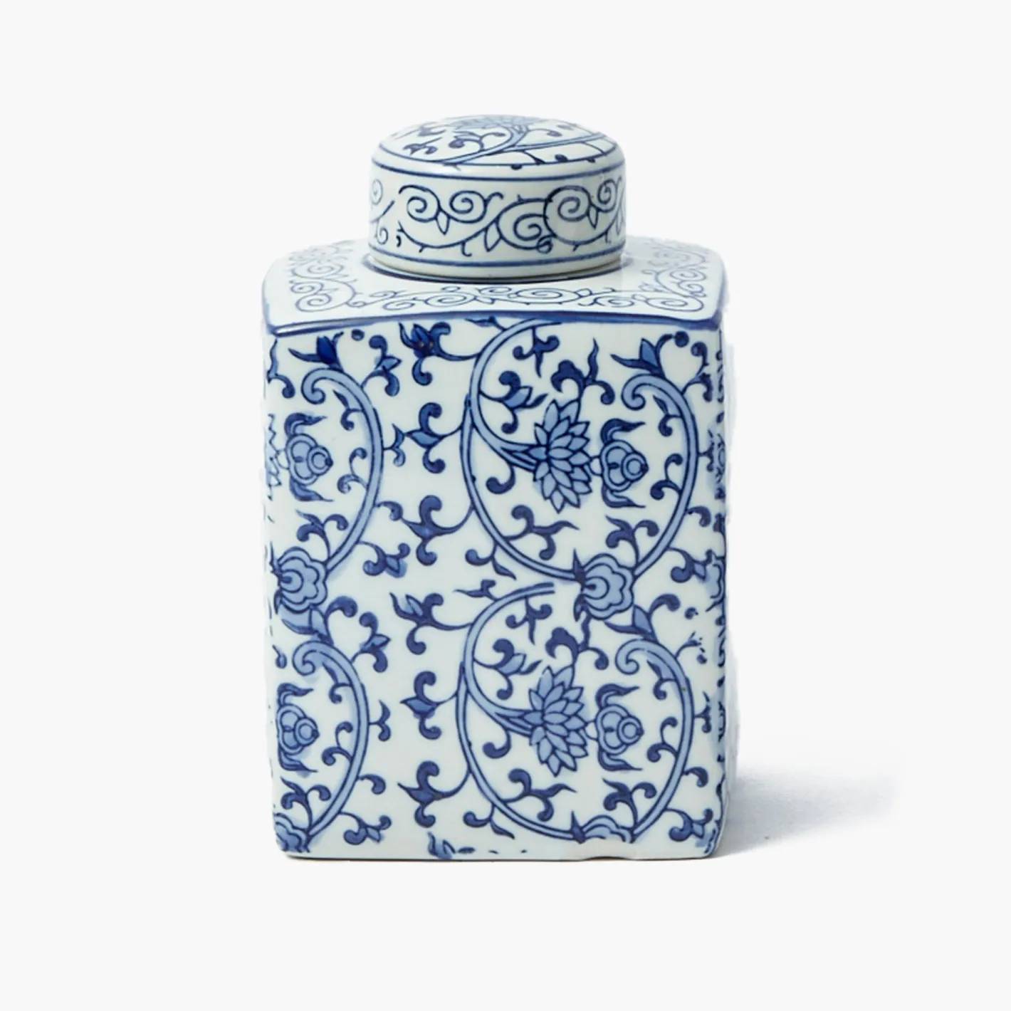 Our Square Traditional Ginger Jar will add depth and character to your home. Versatile and elegant these Chinoiserie blue and white jars with a circular lid can be used as a vase, storage or as a stylish accessory.