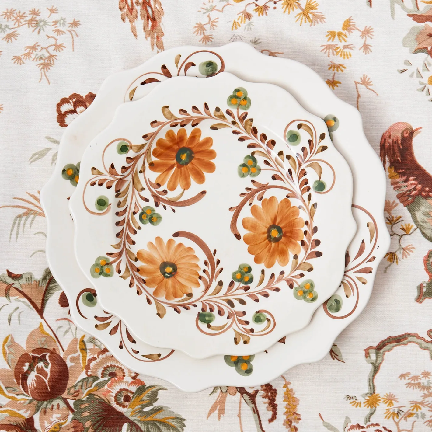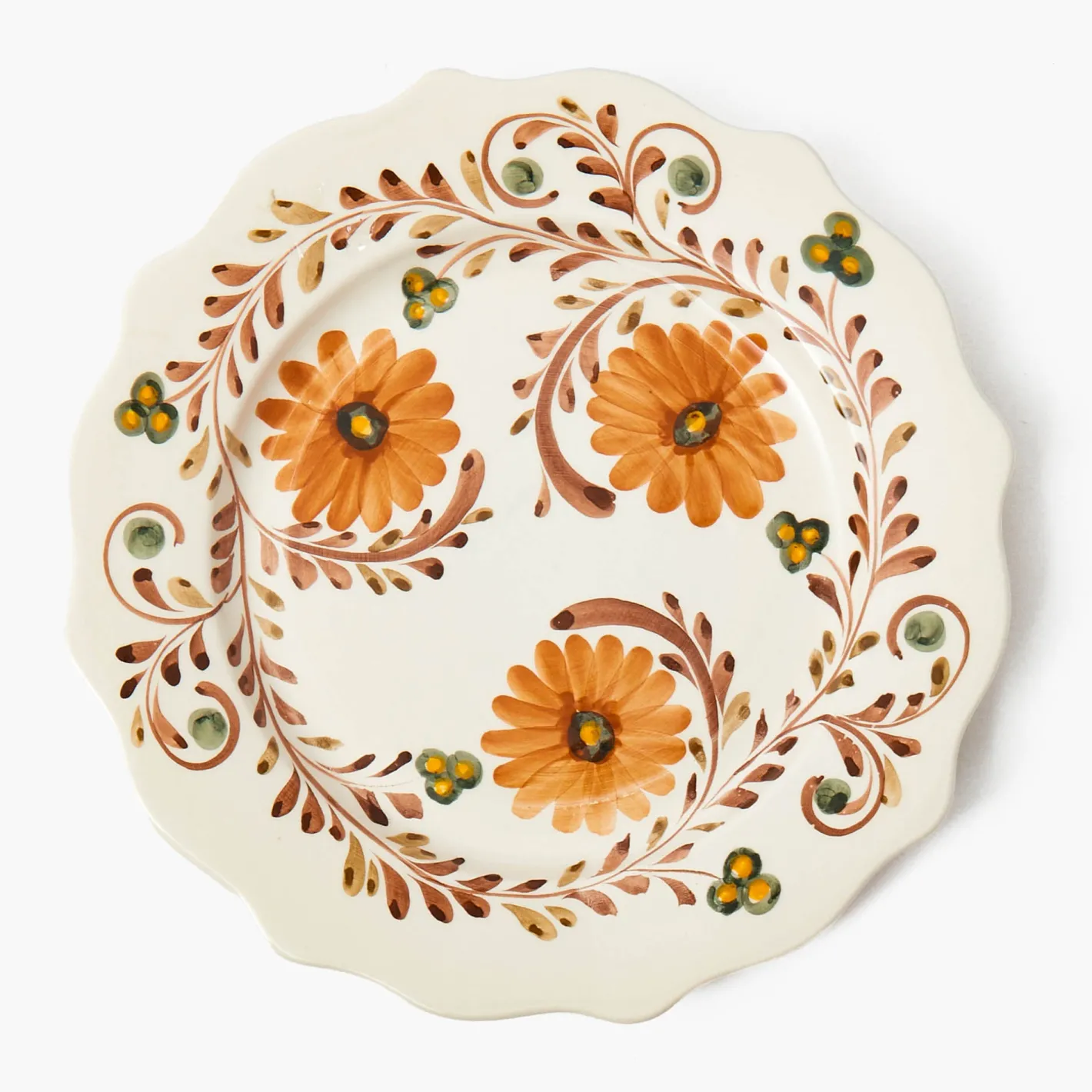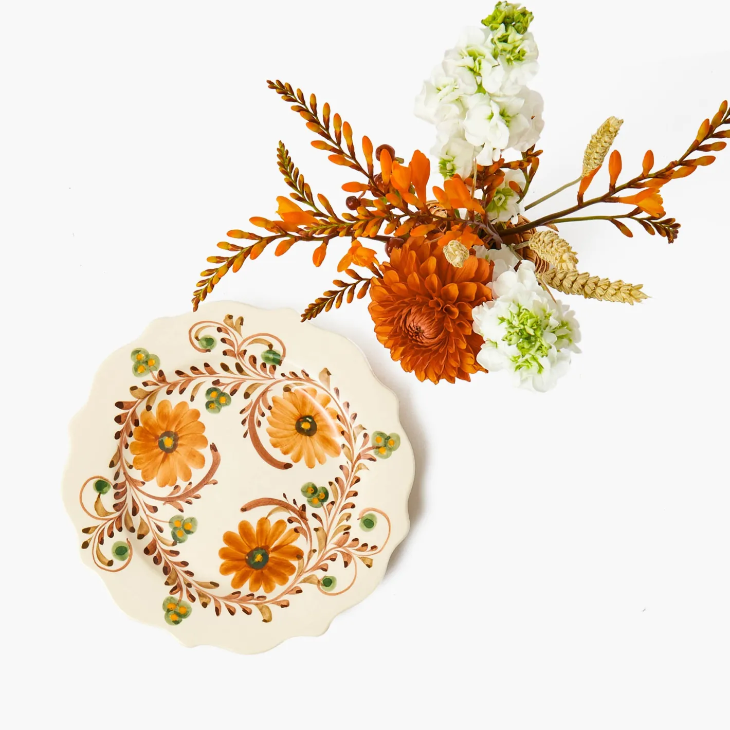 Our Autumn Flowers Starter Plates are an ode to the English countryside. With a delicate hand-painted floral design and garland rim, these plates will look as good on their own as they do with our matching dinner plates.
