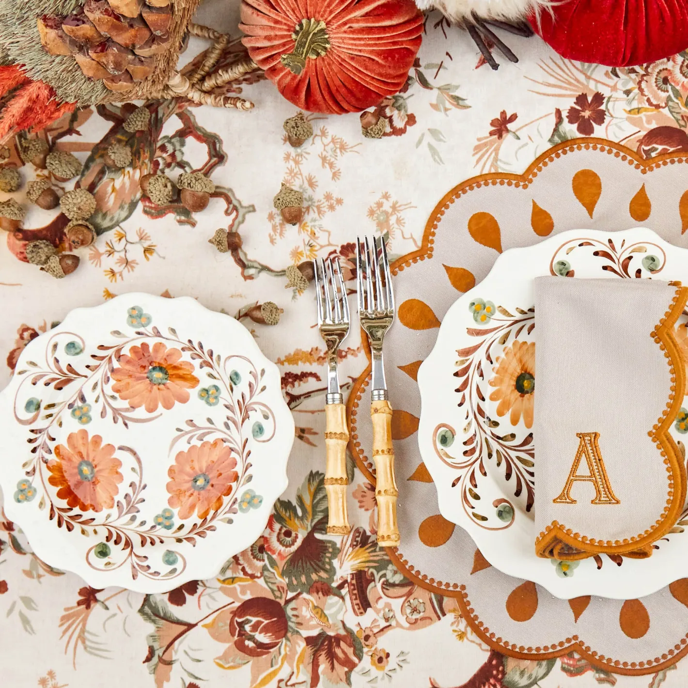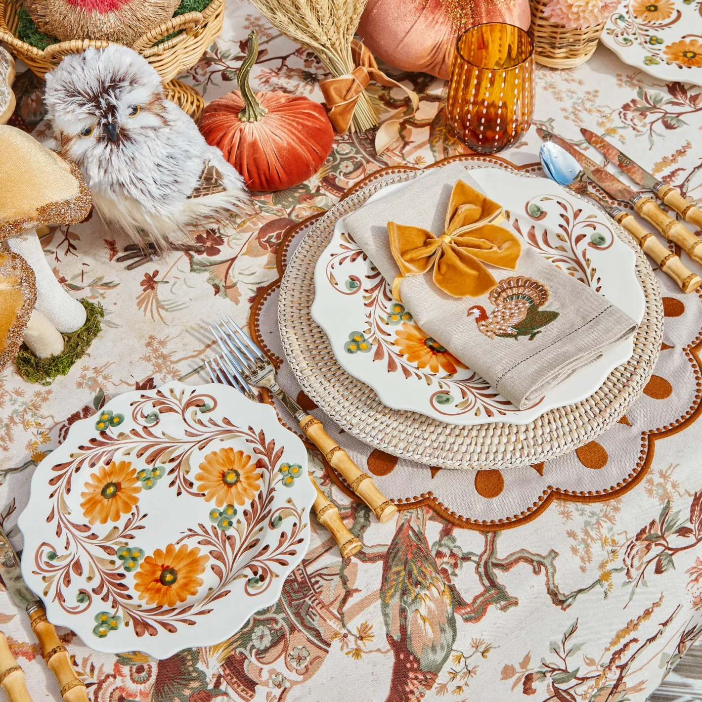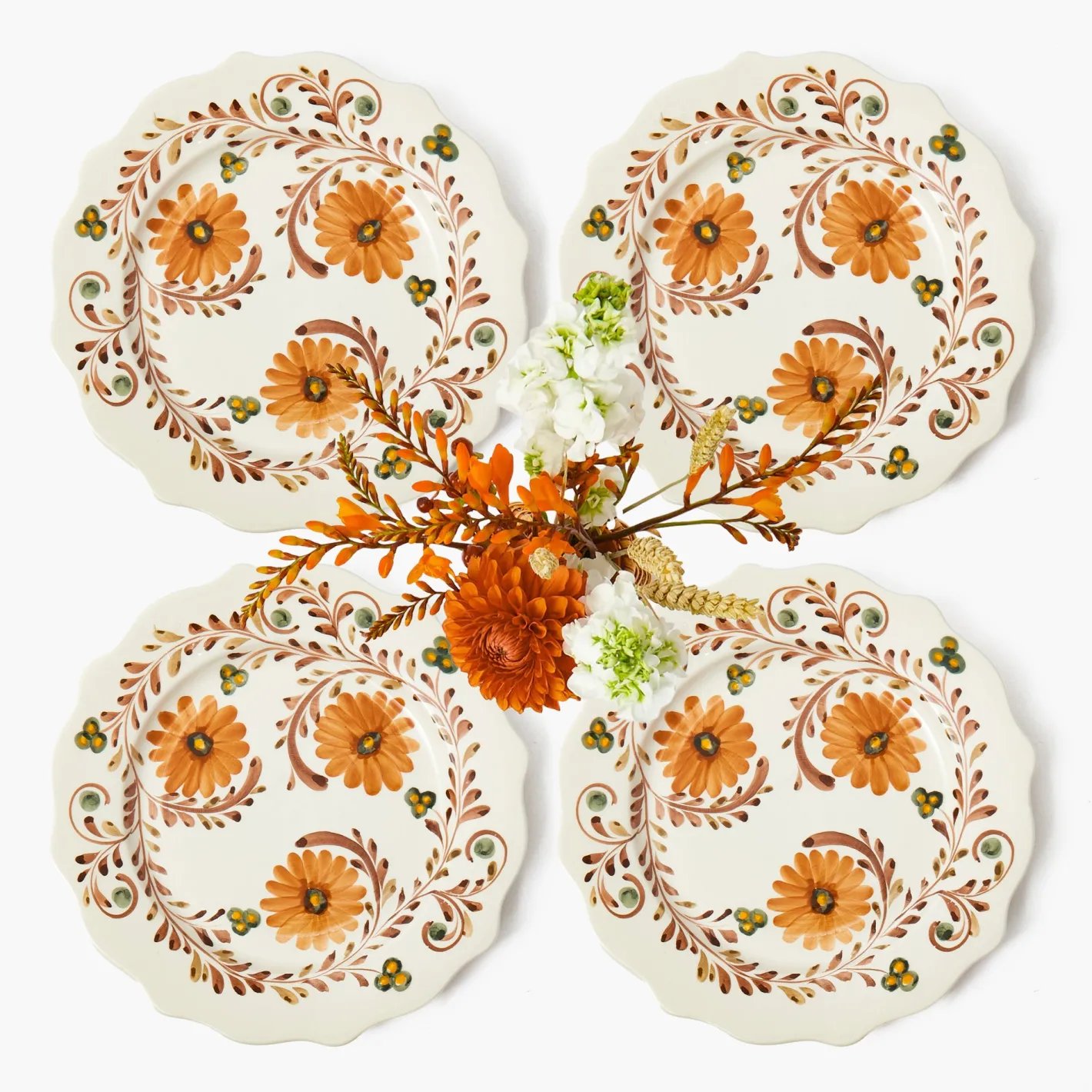 Our Autumn Flowers Starter Plates are an ode to the English countryside. With a delicate hand-painted floral design and garland rim, these plates will look as good on their own as they do with our matching dinner plates.