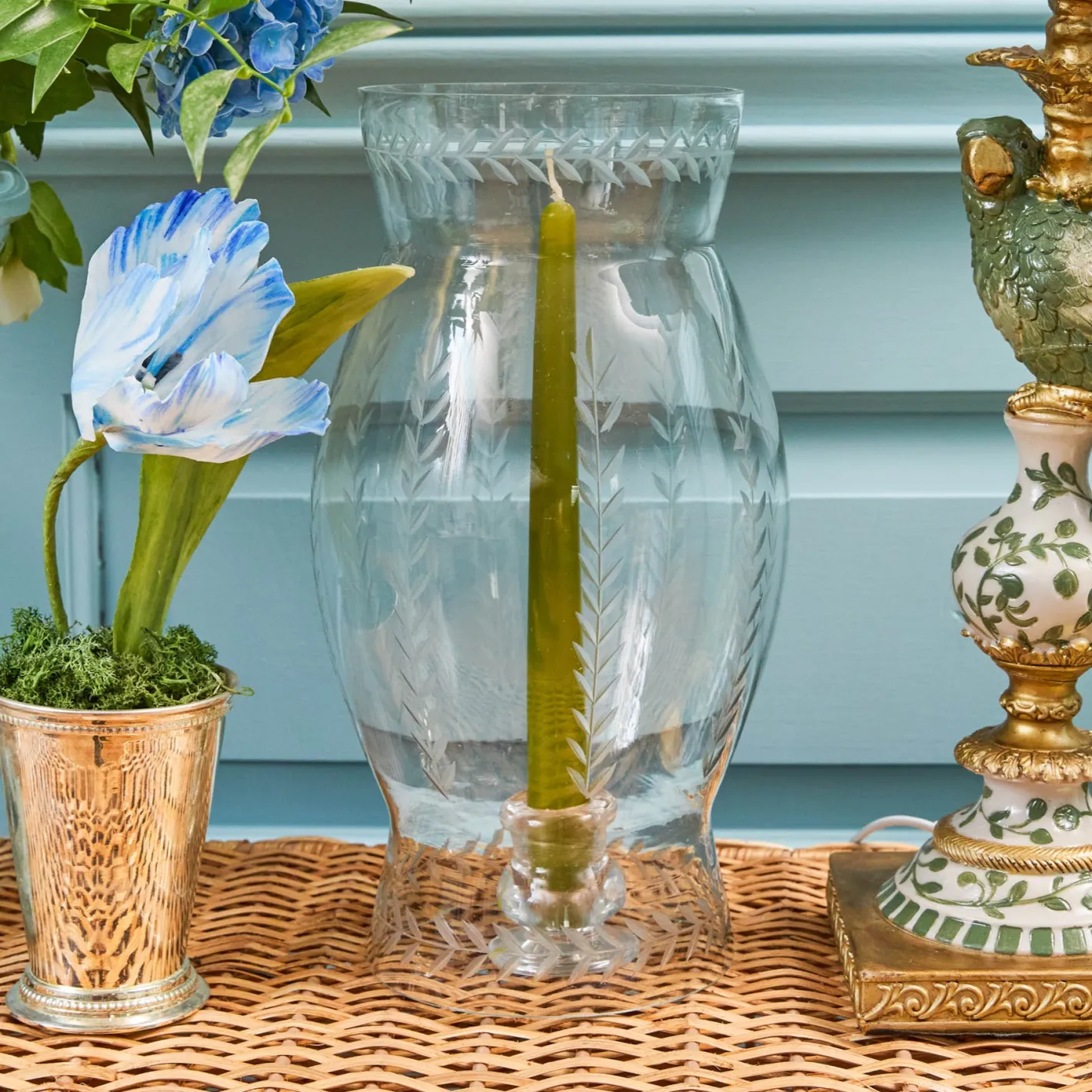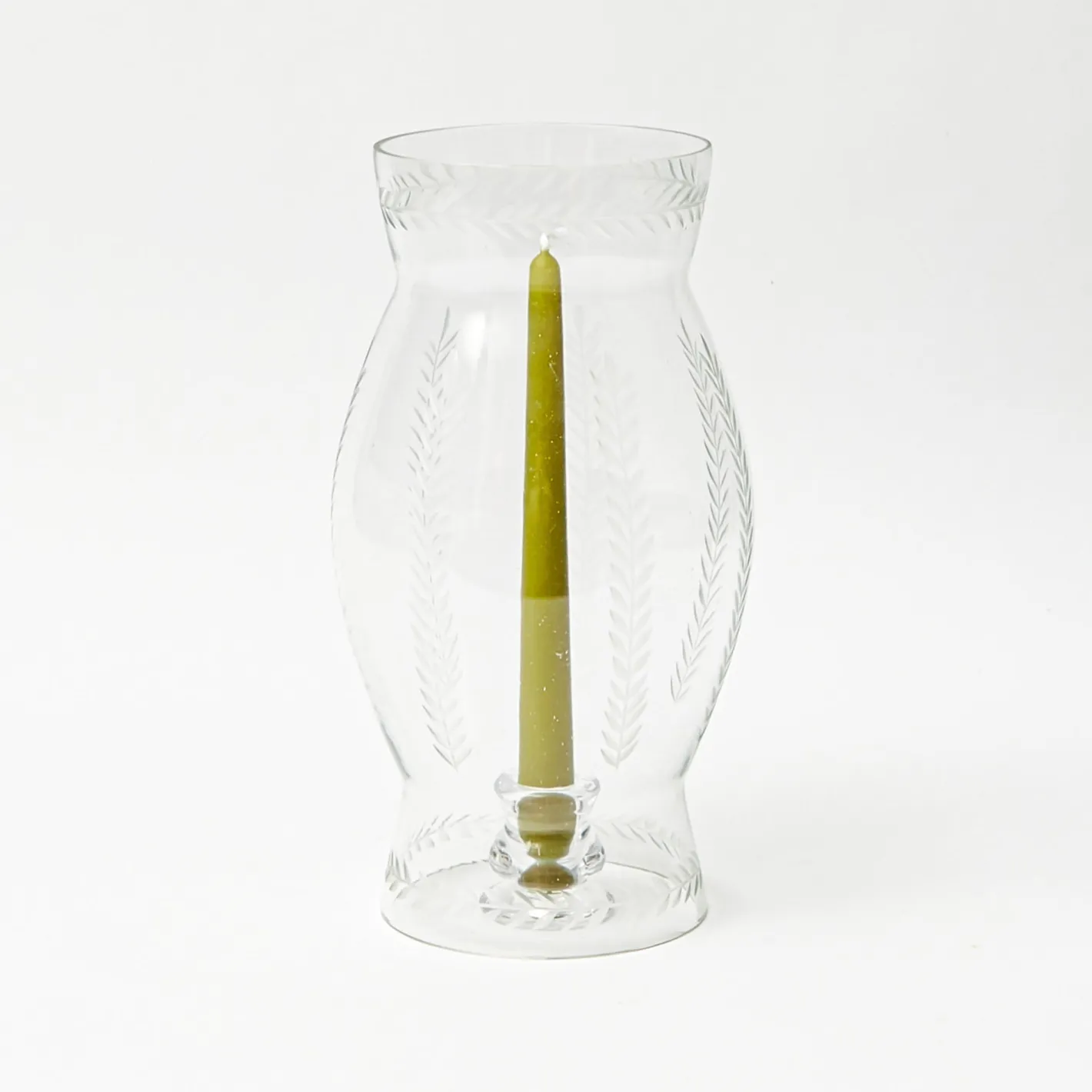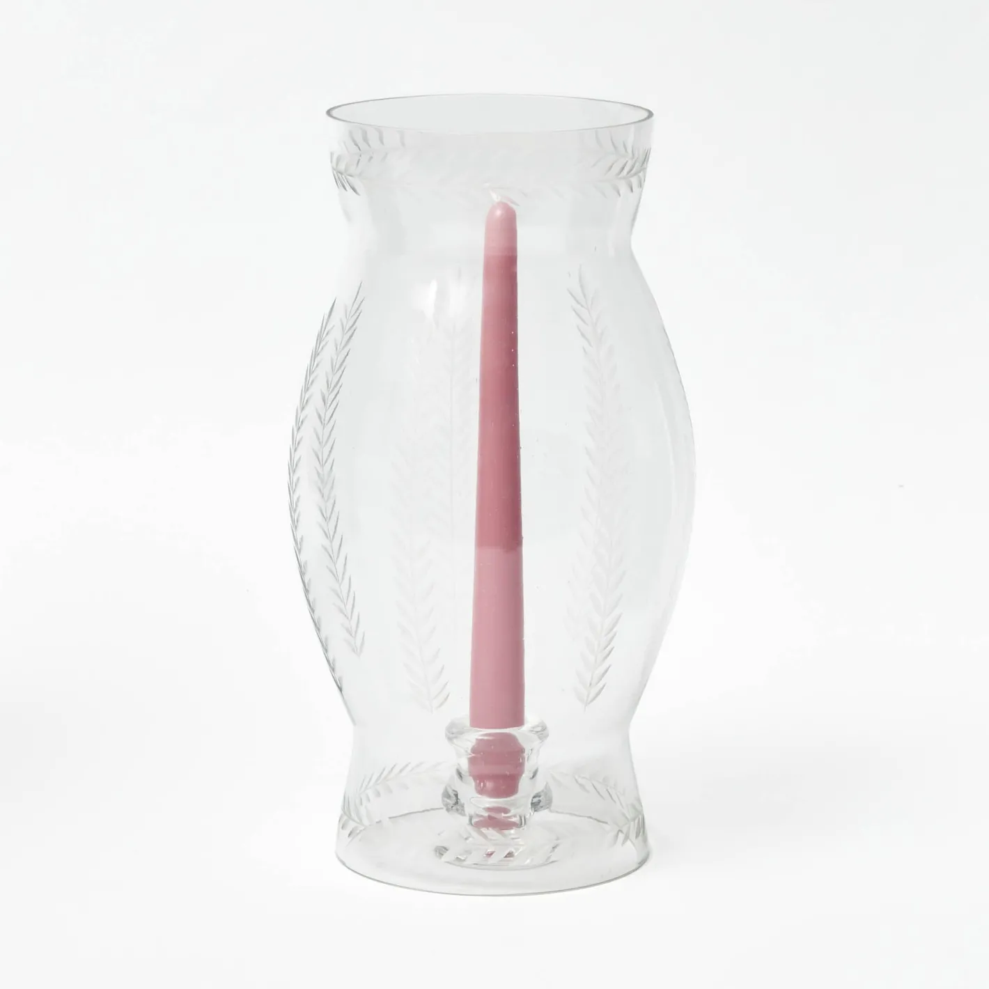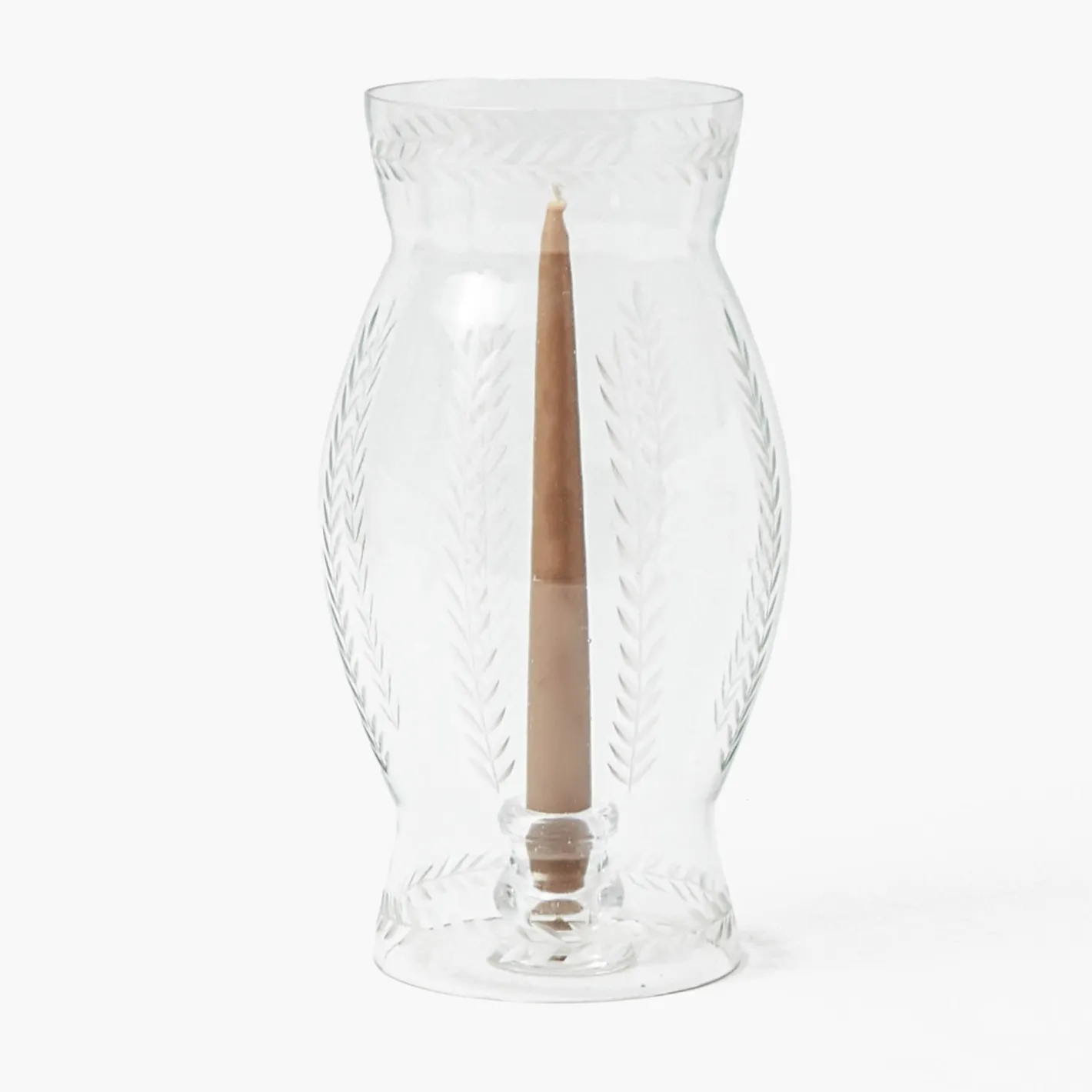 This elegant and practical two-part glass hurricane lamp has stylish engraved laurel leaf details. Ideal to use indoors…