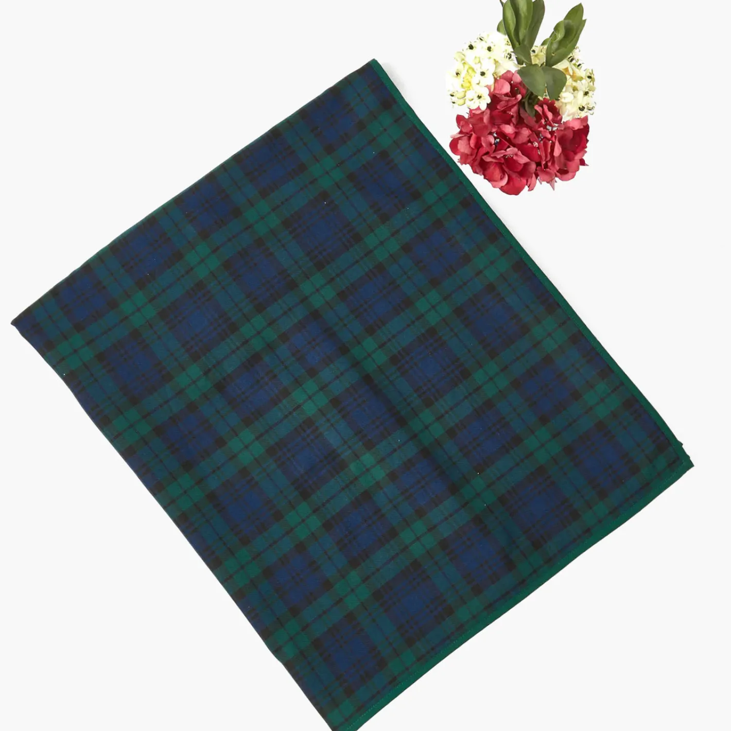 Our Katriona Tartan Tablecloth is a chic alternative to traditional festive colour palettes. With a sophisticated Scottish tartan pattern in a wash of green and blue, this piece is perfect for cosy dinners and seasonal soirees.