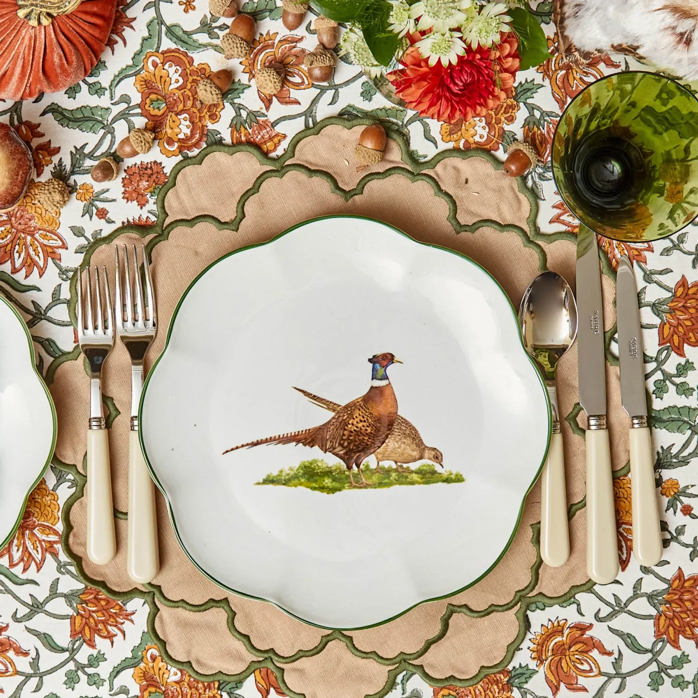 Coming in a feminine fleur shape, our Lily Sand & Green Placemats are perfect for softening your tablescapes. Each piece has been adorned in a versatile sand hue but embellished with a intricate forest green trim.