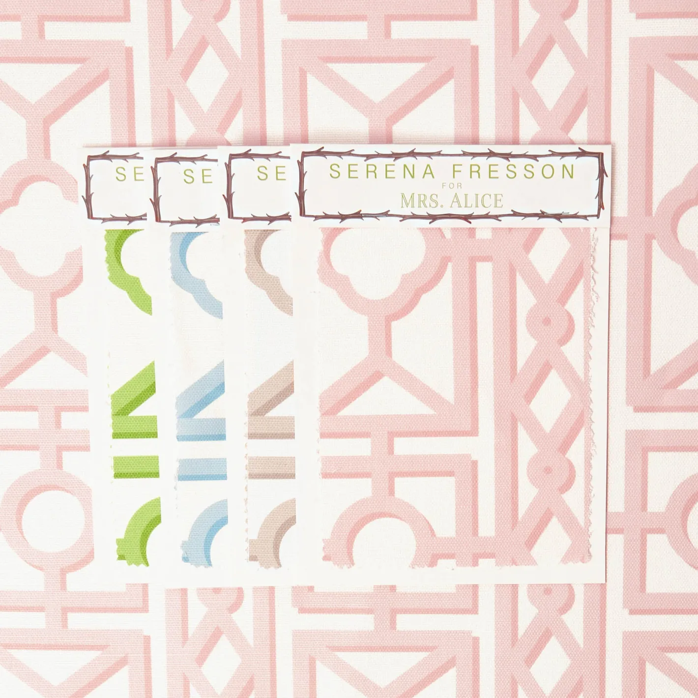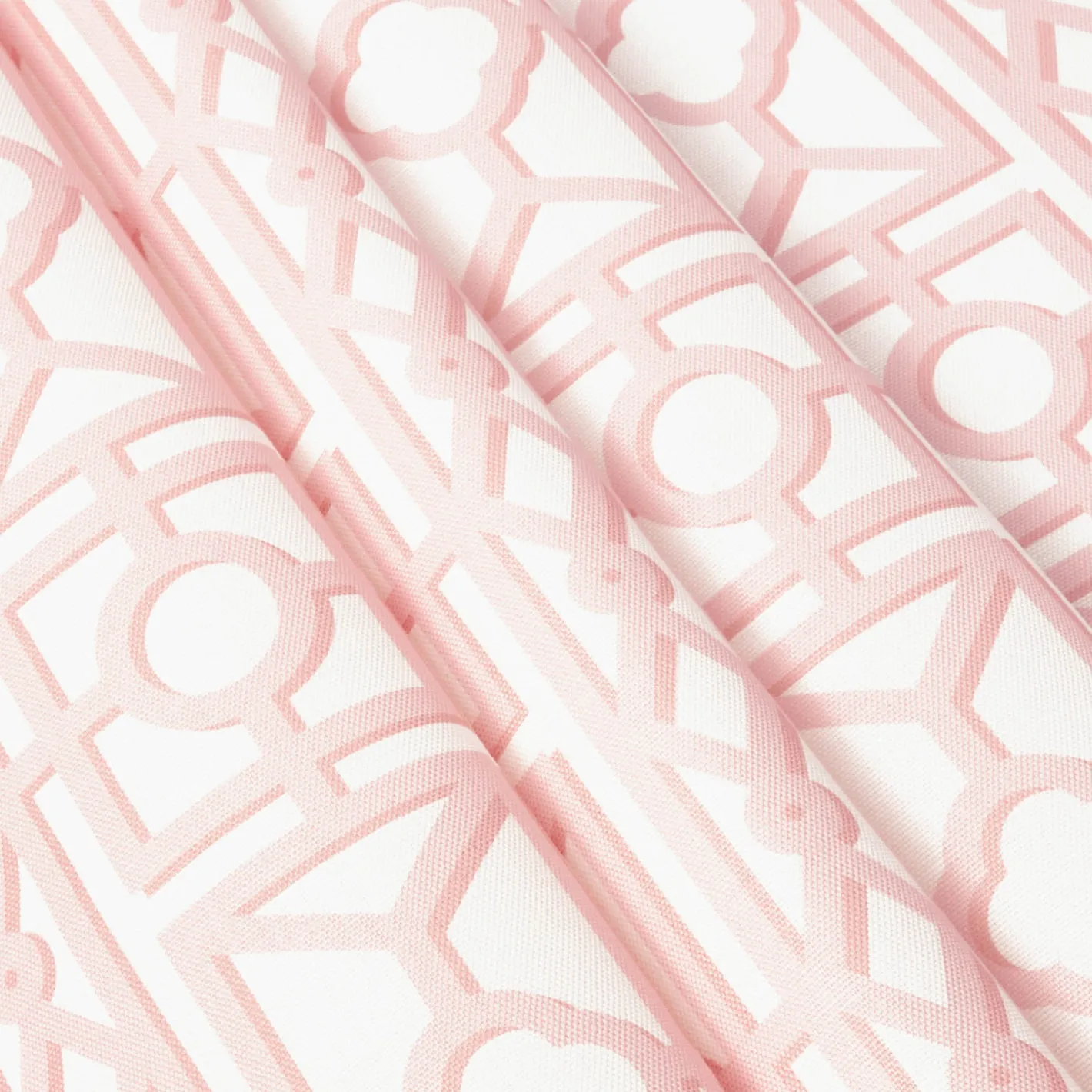 This wonderful pink colourway is the latest addition to Serena’s staple Pavilion fabric collection. Now, this geometric trellis design comes in a plethora of hues and will instantly elevate uninspired spaces.
