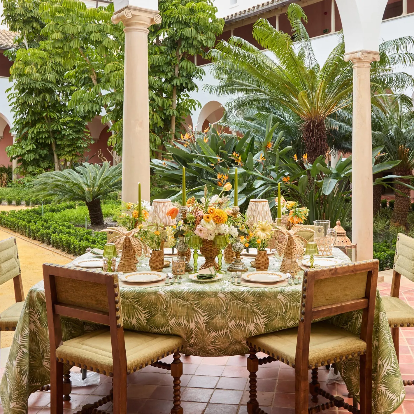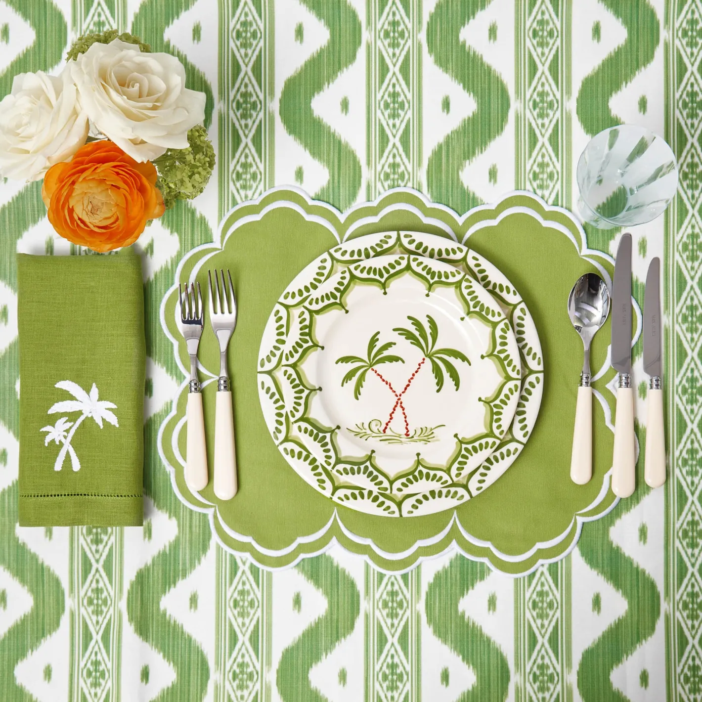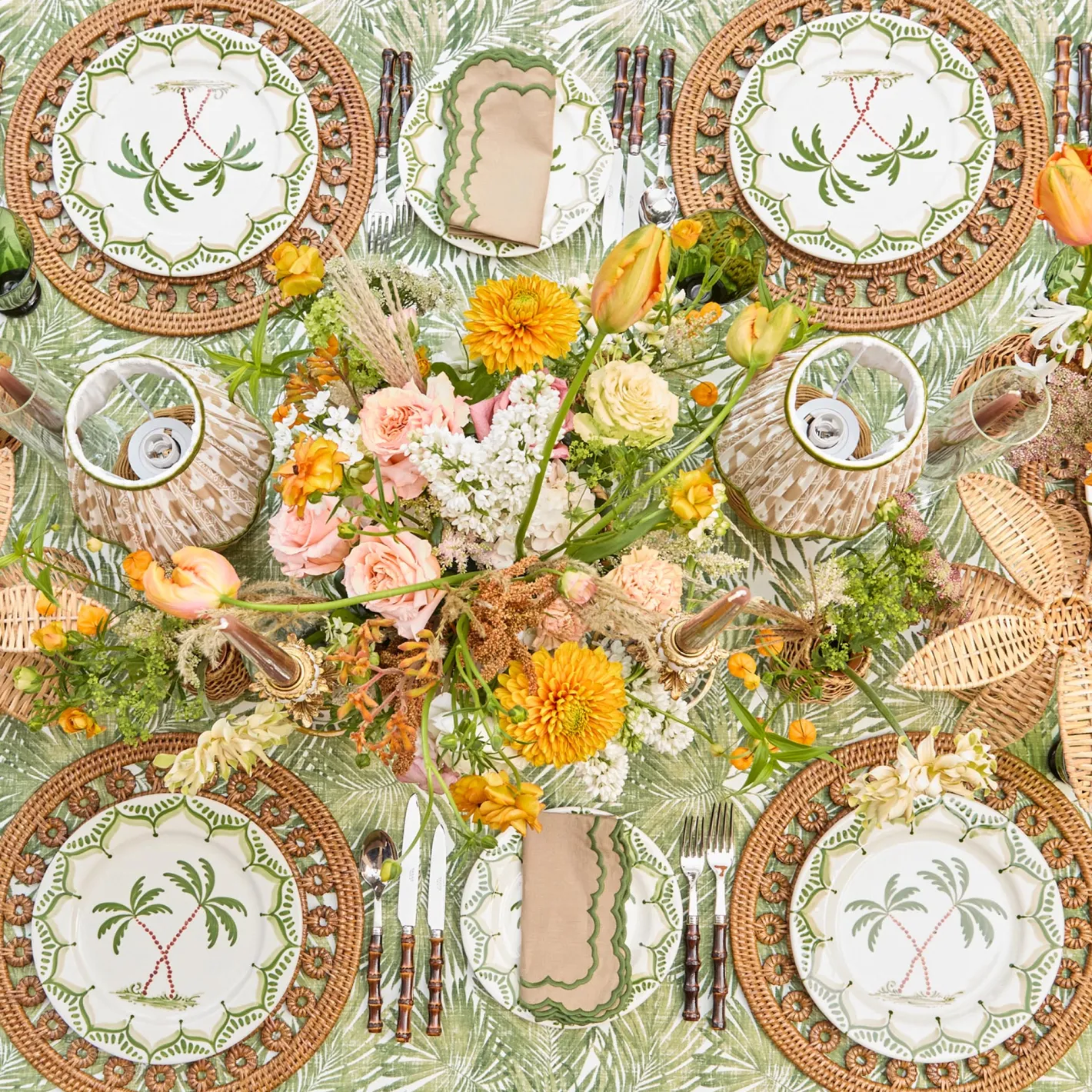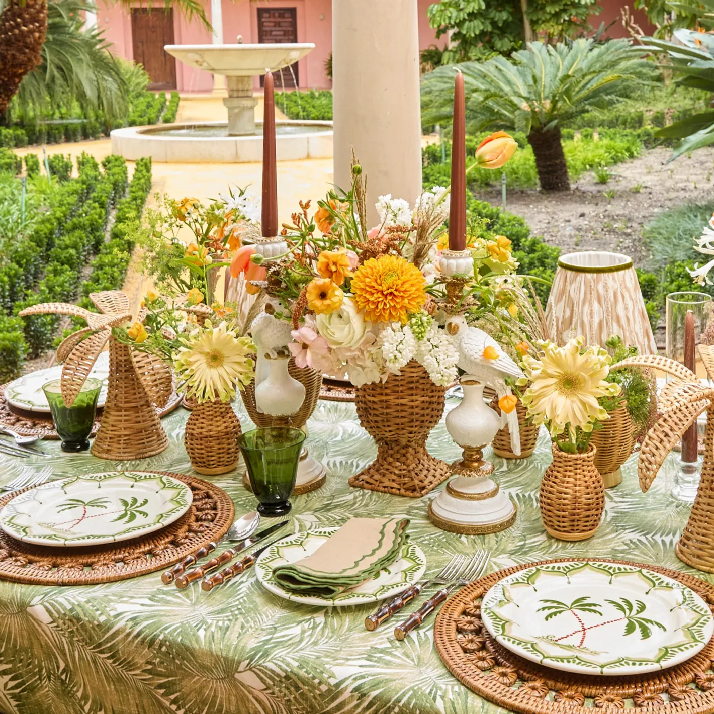 This set looks stunning with our La Palmeraie Tablecloth, Rechargeable Lamp with Green Lampshade and Rattan Palm Tree Decoration.