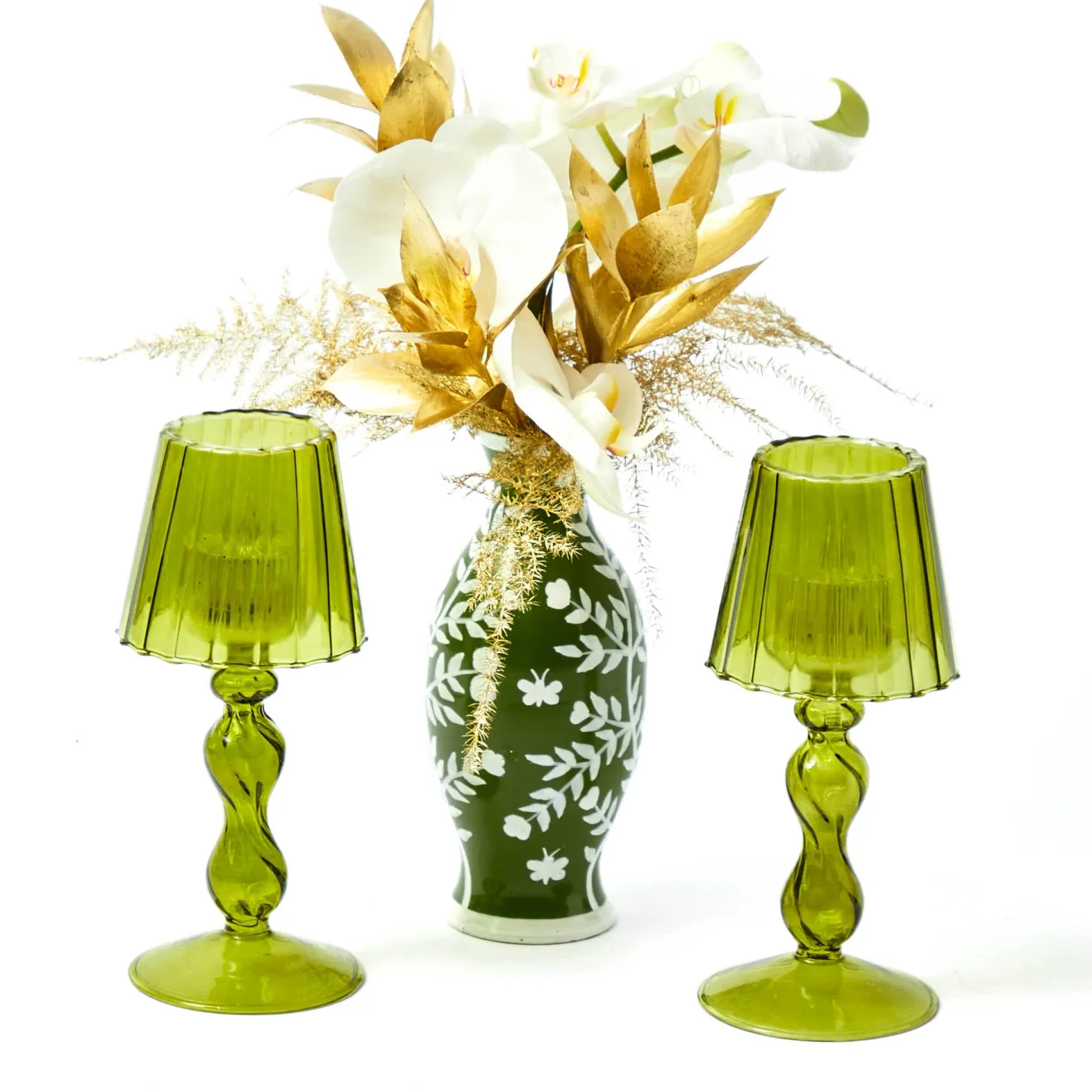 Our Olive Glass Lantern Tea Light Holders are perfect for creating an intimate atmosphere. These ornate glass candle holders come in a refreshing colourway and bring a sense spring with them.