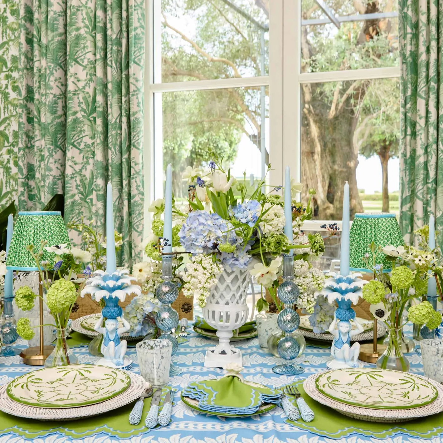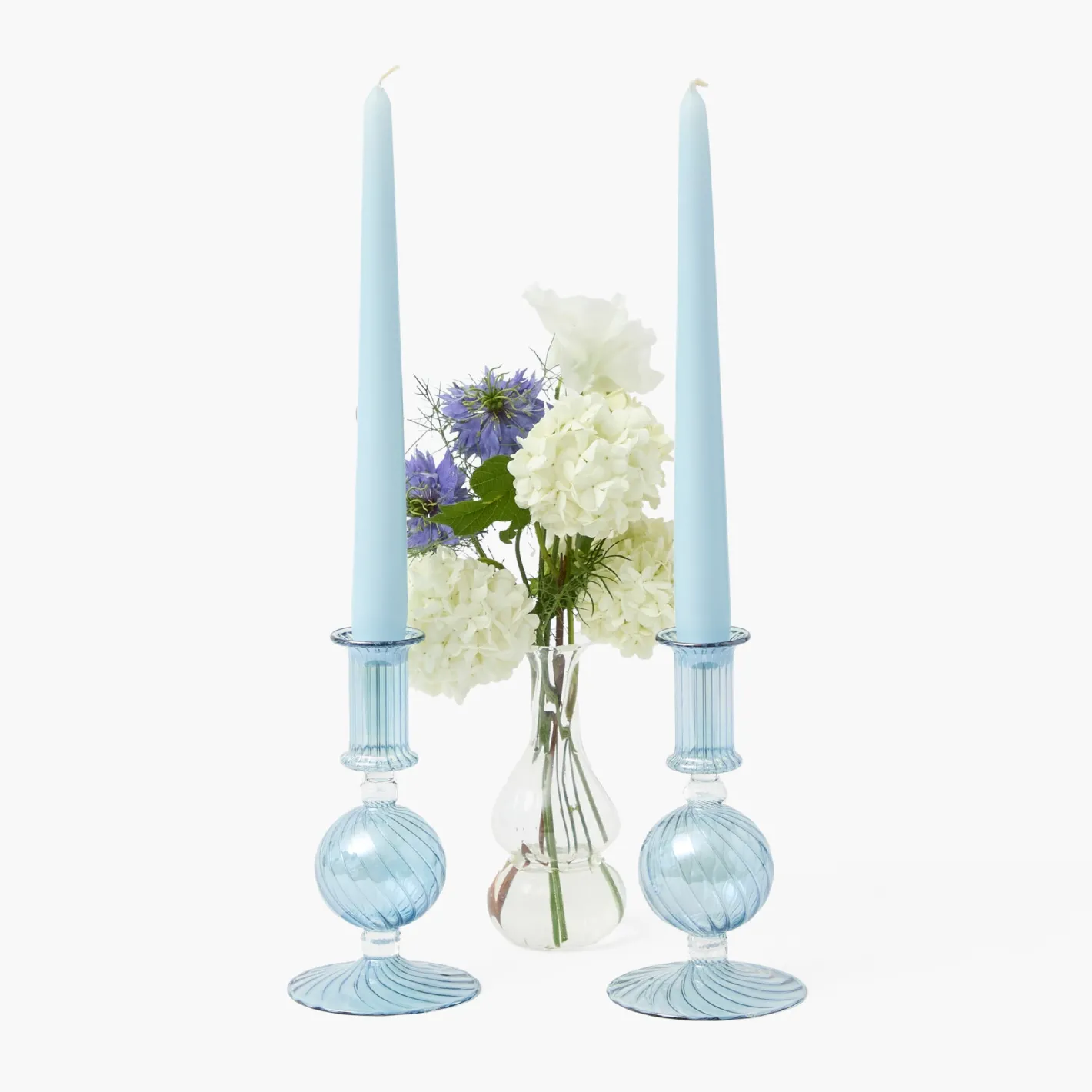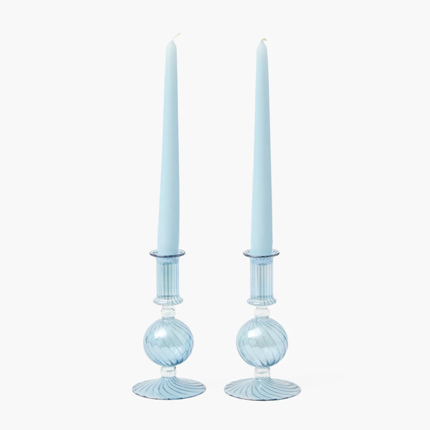 Our lovely Pair of Small Camille Azure Candle Holders are an elegant addition to your table. Designed with hand-blown el…