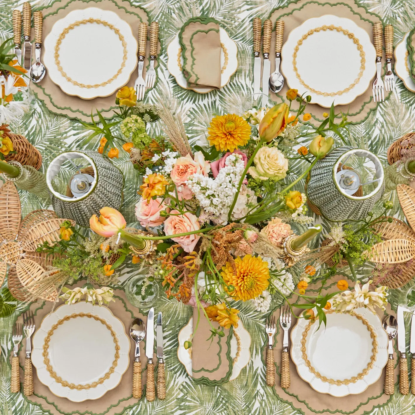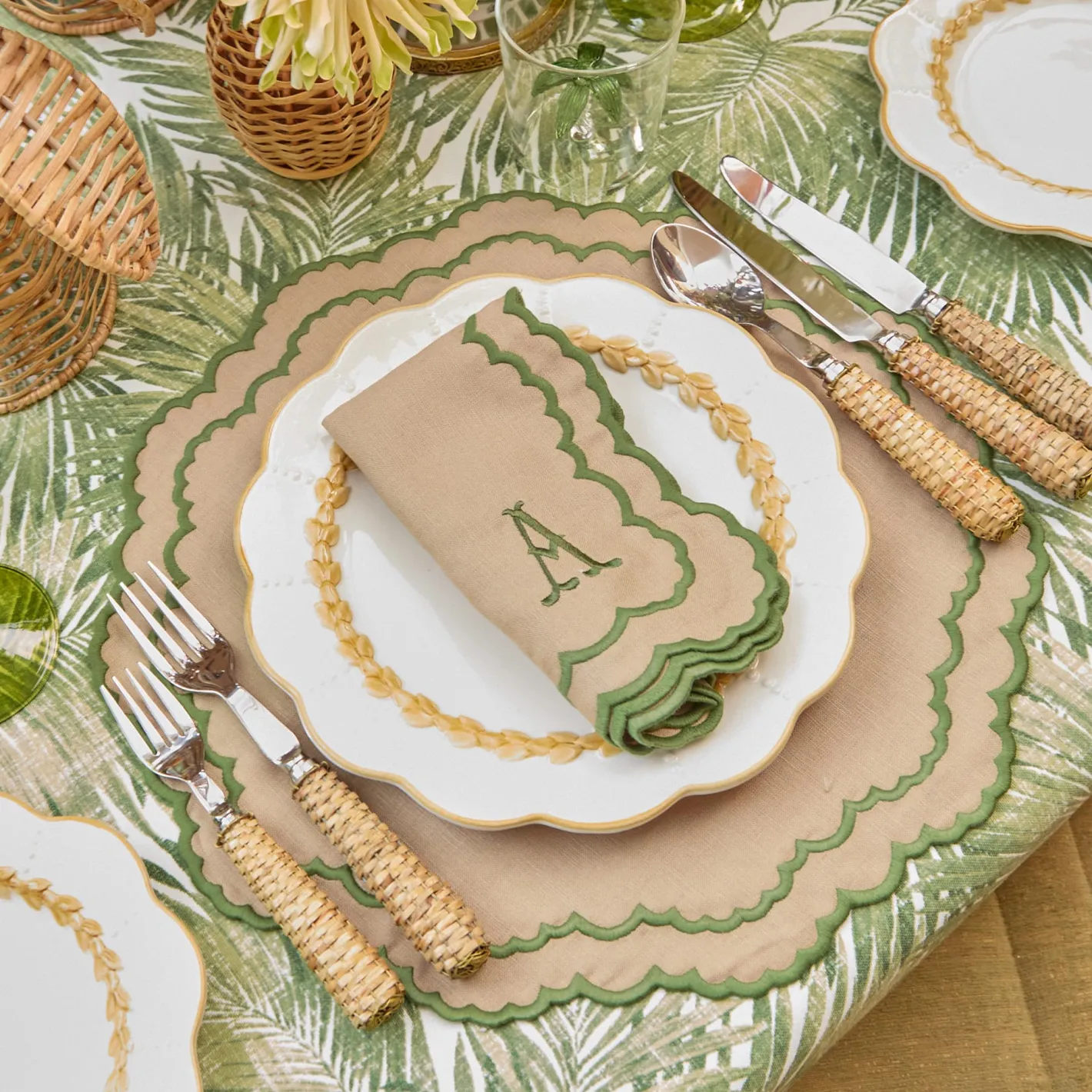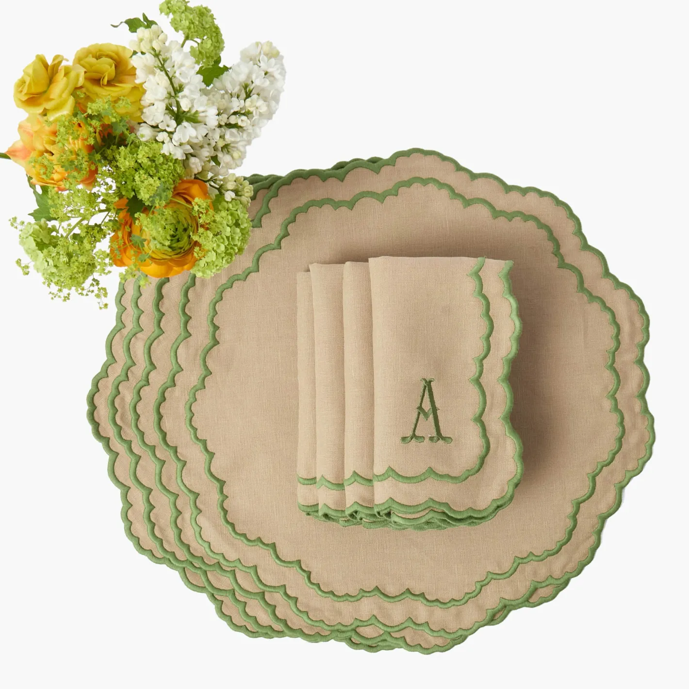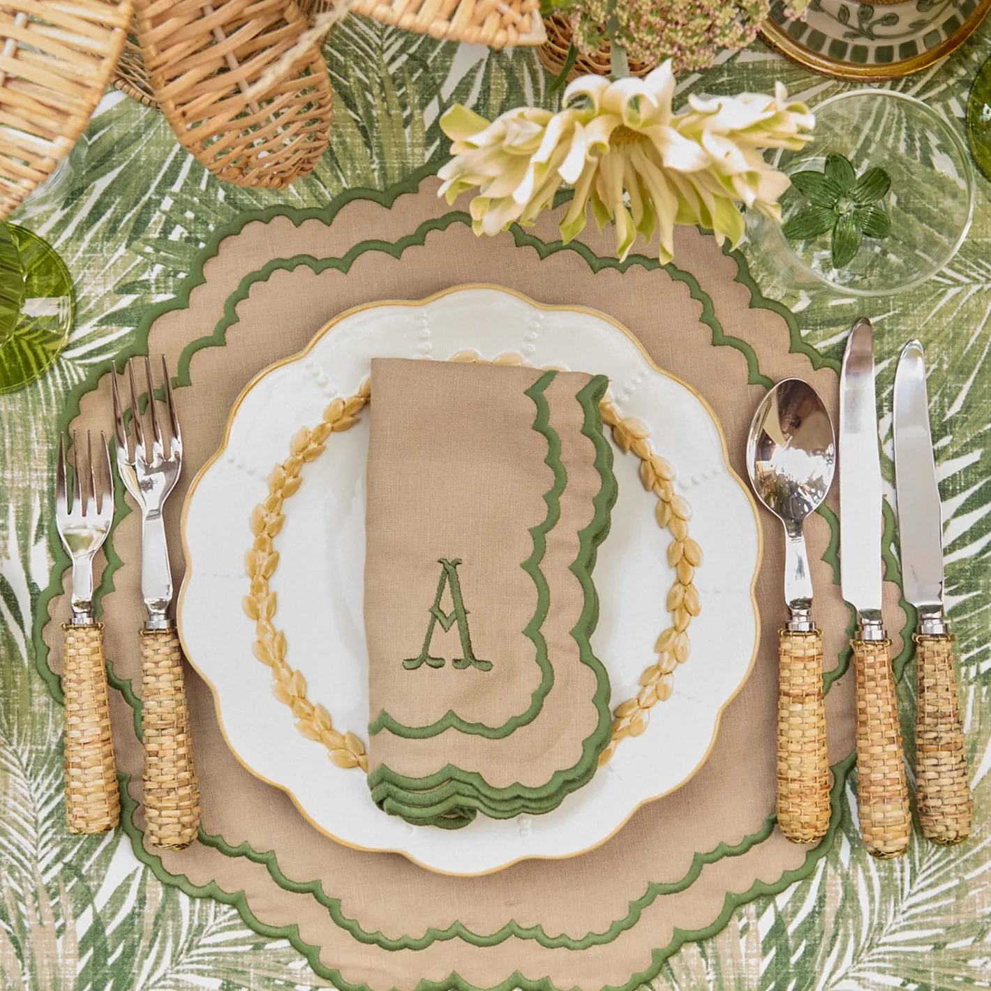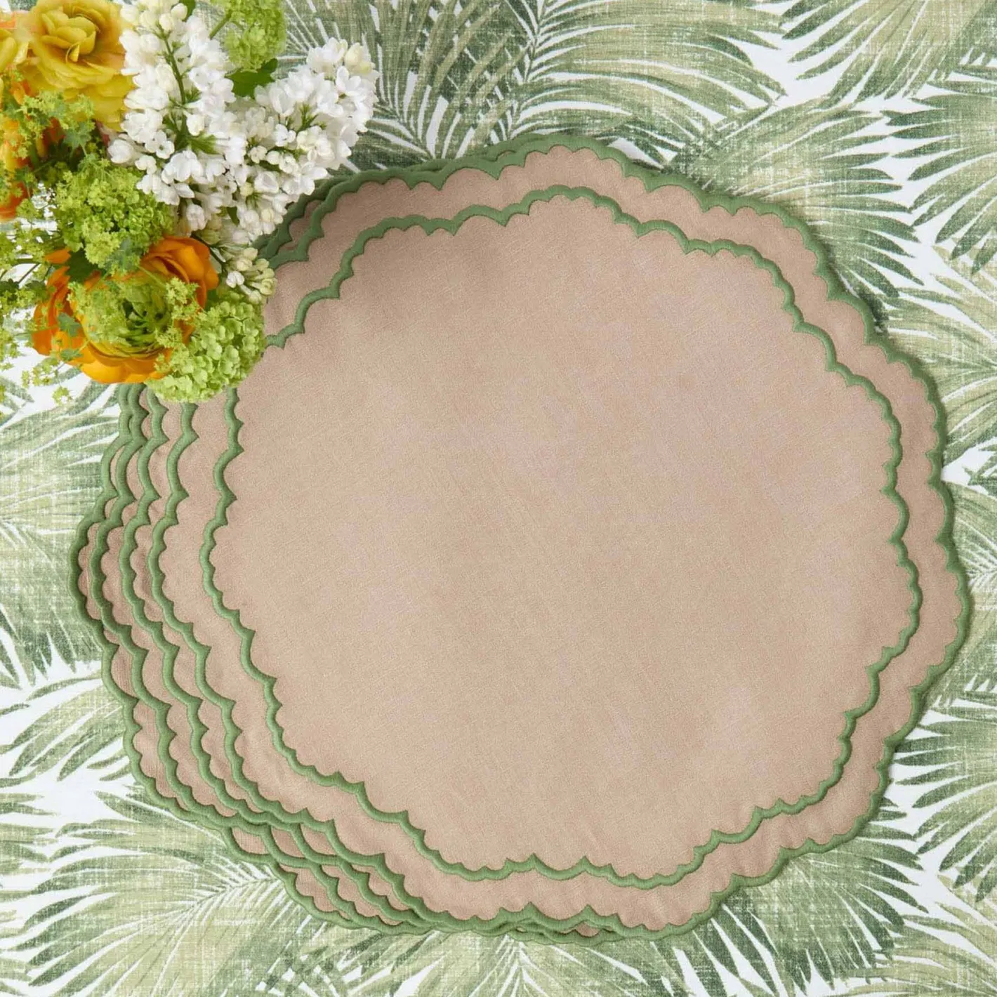 Our Edith Sand & Green Placemats pay homage to Andalucían olive groves. Coming in a versatile sand with fresh green trims, these four linens are perfect for adding a base for sunny entertaining.